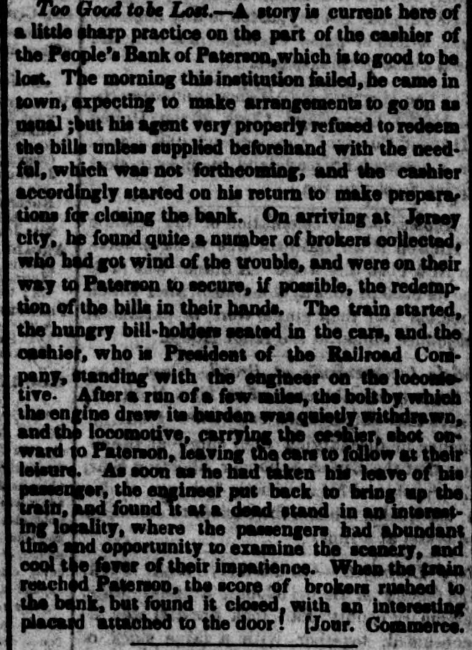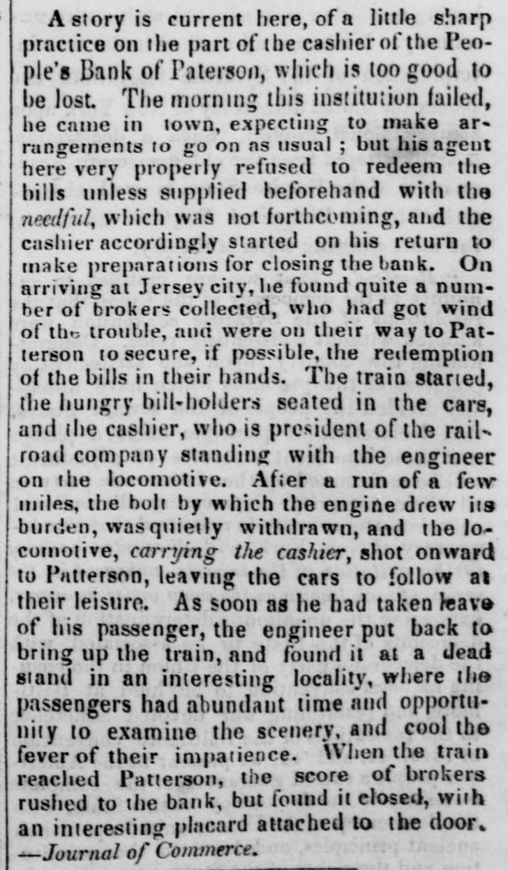 POSTSCRIPT! [Despatched to the American Telegraph.] BALTIMORE, September 25-2 p. m. Sales of 500 bbls. Howard street flour have been made to-day at $8 87 to 94. Grain is scarce and prices unchanged. There is no alteration in the Northern markets. The Examination at Lancaster of the Christiana Rioters. LANCASTER, September 23, p. n.-The magistrates met in the Court-house at 11 o'clock, this morning, for the purpose of hearing Castner, Hanaway, Elijah Lewis, and others, charged with aiding and abetting in the Sadsbury township murder, and also with treason in resisting the execution of the laws of the United States. The following counsel appeared on the part of the Commonwealth-Hon. John L. Thompson, District Attorney; William B. Fordney, esq.; Thomas E. Franklin, Attorney General of Lancaster county; George L. Ashmead, esq., of Philadelphia, a representative of the United States authorities in place of John W. Ashmead, United States District Attorney, absent on official business; and Robert J. Brent, Attorney General of Maryland. For the defence-Thaddeus Stephens, Reah Frazer, Ford, Kline, and Dickey, esq'rs. Long before the hour for the examination. to commence, the court-room was crowded to excess, and the most intense interest was manifested in the proceedings. Five witnesses were examined, among whom were United States Marshal Kline, Dr. Pierce, and Mr. Hutchins. Nothing important, further than what has heretofore been published, has as yet been elicited. However, it is apparent that a strong case of treason has been made out. The defence intimated that they had some thirty witnesses to be examined. The case will probably not be got through before Thursday morning. It seems to be the general impression among the members of the bar that the prisoners will be committed to answer the charge of treason against the United States. The crowd in attendance continued very large up to the hour of adjournment. PHILADELPHIA, September 24, p. m.-Bank Failure. - The People's Bank, at Paterson, New Jersey, failed to-day. Its circulation we understand is very small. TRENTON, (N. J.,) September 24th.-The September term of the United States circuit court opened here yesterday. The grand jury found two indictments. The civil docket was then called, and the principal case was Goodyear vs. Day, involving the validity of the Goodyear India Rubber Patents. The action in law being first in order, the defendants expressed themselves desirous of trial. The plaintiffs making no motion, the defendants' counsel moved a nonsuit. The court declined to consider the motion at this time, and refused to try the case in the absence of Judge Grier. It was accordingly postponed till his arrival on Tuesday next. BOSTON, Sept. 24.-The steamship Niagara sailed to-day, with fifty-five passengers, and $335,000, on freight. Accounts from Cherryfield, Maine, state that the whole country was being burnt up, and scarcely an acre of green land was left along the seaboard. The flames had swept over Mt. Drescot, destroying several houses. In Hancock county they were suffering severely, the roads being almost impassable from the smoke and flames. The timber of the Cutler company was damaged to the amount of $150,000. An accident happened on the Central railroad, near West Hartford, this afternoon, caused by the passenger train while descending a grade, running at the rate of fifty miles an hour, coming in collision with the ascending freight train. The cars and passenger train were completely demolished. Seventeen persons were badly injured, and four killed. Nine had their limbs broken. Mr. C. Kimbal, conductor, and Mr. Frederick Palmer, brakesman, were fatally injured. The engineer and fireman was escaped by jumping off. The freight train running out at the time. John Smith, conductor on the Stonington railroad, was knocked off the train to-day, and his head cut off by the wheels. NORWAY, Me., Sept. 24th.-Bernett's Hotel and five other buildings have been destroyed by fire. Loss $20,000.
