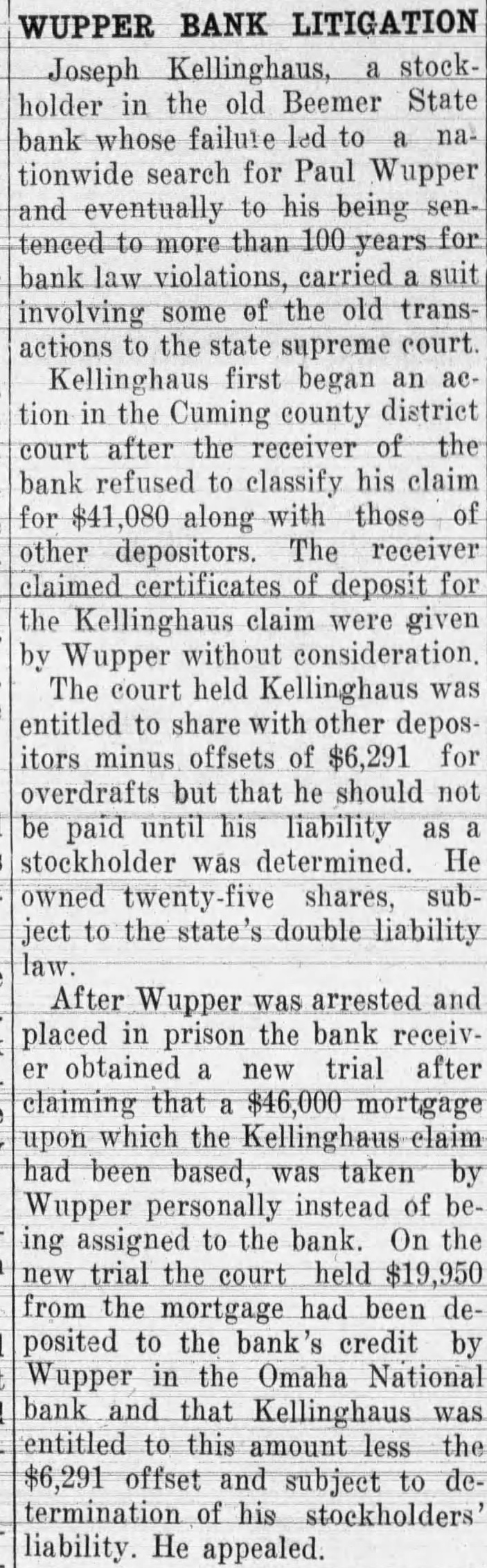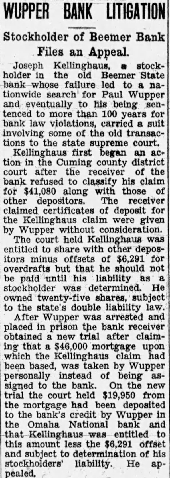 CASES TO BE TRIED DISTRICT COURT CRIMINAL CASES The State of Nebraska VS Joseph The State of Nebraska V8 Einar Carlson Auto theft. The State of Nebraska VS Lloyd Dinsmore and Arnold Clementson. Burglary The State of Nebraska VS Ed Fork. Murder. CIVIL CASES Walter Reeson VS Charles Krep. ela et Foreclosure Mortgage Re Estate of Henry Harstick. First National bank, West Point, V8 Henry Toelle and Emma Toelle. On notes. John Weitzenkamp VS Wanda Weitzenkamp. Divorce. The Equitable Life Assurance Society V8 Francis M. Tighe et al. Foreclosure mortgage. The Lincoln Joint Stock Land bank vs Thomas Peterson et al. Foreclosure mortgage. Hudson Miller VS Anna Svoboda. Caleb R. Thompson VS Clements Tingelhoff. Damages. Mary Sinclair et al. V8 Margaret Bailey et al. Partition. Metro-Goldwyn Dist. Corp. VS Louis W. Splichal. On contract. The Howells State bank VS Leo L. Wolff et al. On note. L. W. Jerman et al. VS Elizabeth A. Kane et al. Foreclosure mortTheodore Oligmueller, Gdn. Henry Stieren V8 John T. Baumann t al. On bond. Luther L. Heller et al. Adms. Estate A. B. C. Heller, ded. VS J. Herman Russman et al. Foreclosure mortgage. Nebraska State Building & Loan Ass'n. VS Charles Krepela et al. Foreclosure mortgage. Erwin Seelmeyer VS William P. Mangold et al. Damages. First National bank, West Point VS Frank Grewek On note. Ida Balster Adm. Estate of Fred Balster, ded. VS Otto C. Keller et al. Foreclosure mortgage. Chester H. Toxword VS Farmers (Mutual Ins. Co. et al. Damages. Aletta L. Thompson vs Atlas Insurance Co. On policy. Farmers & Merchants State bank of Pender VS John J. Konicek. On note. Arthur T. Alexander vs J. Emil Johnson et al. Foreclosure mortgage. Jacob S. Novak VS June Novak. J. T. Baumann vs Magdalena Oligmueller et al. Petition in error. First National bank, West Point NS Henry Toelle et al. Foreclosure C. A. Carlberg V8 John F. Farley et al. Foreclosure mortgage. Kate High VS William W. Frankfurt et al. Foreclosure mortgage. Fremont Joint Stock Land bank IVS William L. Neiman et al. Foreclosure mortgage. John M. Collins VS John H. Twehous et al. Foreclosure mortgage. Katherina Wordekemper vs John H. Twehous et al. Foreclosure mortgage. The State Savings & Loan Ass'n. vs Philip Baas et al. Foreclosure mortgage. The Howells State bank VS Paul Renner et al. On note. May Peterson vs Francis Ockander et al. The Lincoln Joint Stock Land bank VS Alvin Browning et al. Foreclosure mortgage. Martha Leuthauser VS John Geu et al. Foreclosure mortgage. The Lincoln Joint Stock Land bank vs Henry Westerhold et al. Foreclosure mortgage. The County of Cuming vs Anna Wiesner et al. Foreclosure Tax Sale Certificate. Christina A. Romberg et al. VS Martin Sanders et al. Specific performance. Herman Meister sr. VS John E. Rabe et al. Foreclosure mortgage. Red Oak Bridge & Iron Works vs County of Cuming et al. Appeal. Francis C. Lorensen vs County of Cuming. Appeal. Farmers bank of Altona, Nebraska VS County of Cuming. Appeal. Walter L. Erickson V8 County of Cuming. Damages. Wisner State bank VS William H. Fleming. Attachment. Hugo A. Leisy VS William H. Fleming. Attachment. The State df Nebraska ex rel C. A. Sorensen Atty. Gen. vs The Beemer State bank. Receivership. Joseph Novacek VS Cuming county et al. Damages. James P. Moran vs Surety Natl. Farm Loan Assn. et al. Recovery. Bella M. Harmon vs Ruth Gregory. Partition. Robert Diers vs A. L. Krause & Co. On notes. Olive B. True vs Harry J. True. Divorce. Herman Blome VS Henry Preuss and Lawrence Auker. Damages. Emma Lampe VS Clarence Lampe. Sep. maintenance. Emma Glissman vs Francis Kessinger et al. Partition Anna Leisy VS The Farmers Mutual Home Ins. Co. et al. On policy. Adolph Zicht vs Ralph Case et al. Marie Thompson vs Everett Thompson. Divorce. C. H. Smith VS Anna Stephens Guernsey et al. Foreclosure mortgage. State ex rel C. A. Sorensen, Atty. Gen. VS Wisner State bank. Receivership. W. B. Wallace et al. V8 P. O Oswald et al. Foreclosure mortgage Henry Roepken VS George Gar land et al. Damages. Henrietta Roepken V8 George Gar land et al. Damages E. C. Manny, Receiver West Point National bank V8 William F. F. Wickert. On notes C. L. Jos Canarsky VS Louise Canarsky. Divorce Otto H. Zacek VS Fred Lindemann et al. Poreclosure mortgage William McK Nellor et al. VS Charles H Nellog et al. Partition Re West Point National bank. Receivers applications. Re Guardanship of Ross Bryn gelson et al. To sell real estate. Andrew R. Oleson VS The County of Cuming et al Tax accounting. Otto H. Zacek VS Theodore Buchholz et al. Foreclosure mortgage. Chicago & Northwestern R. R. Co. V8 Paul E. Stuefer et al. Appeal. J.E. Ayrerigg VS John F. Farley et Foreclosure mortgage. The Federal Land bank V8 Wilson McGuire et al Foreclosure mortgage. Bankers Life Ins. Co. VS Bertha C. Nelson et al Foreclosure mortgage. E. C: Manny Rec. West Point Natl. bank VS William F. F. Wick ert: On notes. E. H. Luikart Ren. Wisner State bnk VS Thomas F. McGuire et al. Foreclosure mortgage. Lydia Woerman vs Edward Risse et al. Foreclosure mortgage. Chas. Beckenhauer et al. V8 Edward Risse et al. Foreclosure mort gage. Charles Reeson VS Edward Risse et al. Foreclosure mortgage. The Franklin Life Ins Co. V8 John F. Farley et al. Foreclosure mortgage. The Fremont Joint Stock Land Bank V8 Owen Kane et al. Foreclosure mortgage. Lillie Fechner et al. VS Fred Kumm et al. Foreclosure mortgage. National Surety Co. VS John J. Gross. Attorney fees. Louis Roepe et al. as L. Roepe & Son VS Frank Kucera. Appeal Re Est. John Bloedorn, ded. Petition in error. The Union National bank of Fremont VS McLean State Bank et al. Partition. Federal Land bank vs August C. Canarsky et al. Foreclosure mortgage. M. Nelson VS Patrick H. McGill et al. Foreclosure mortgage. Elsie Mertz VS Joe Goeken. A. R. Oleson vs Joe Goeken. Appeal. Reuben Bates VS Standard Bridge Co. et al. Appeal. Federal Land bank VS C. L. Jos. Canarsky et al. Foreclosure mortgage. Frank W. Ludwig vs Alfred J. West et al. Foreclosure mortgage