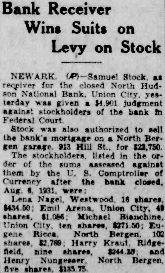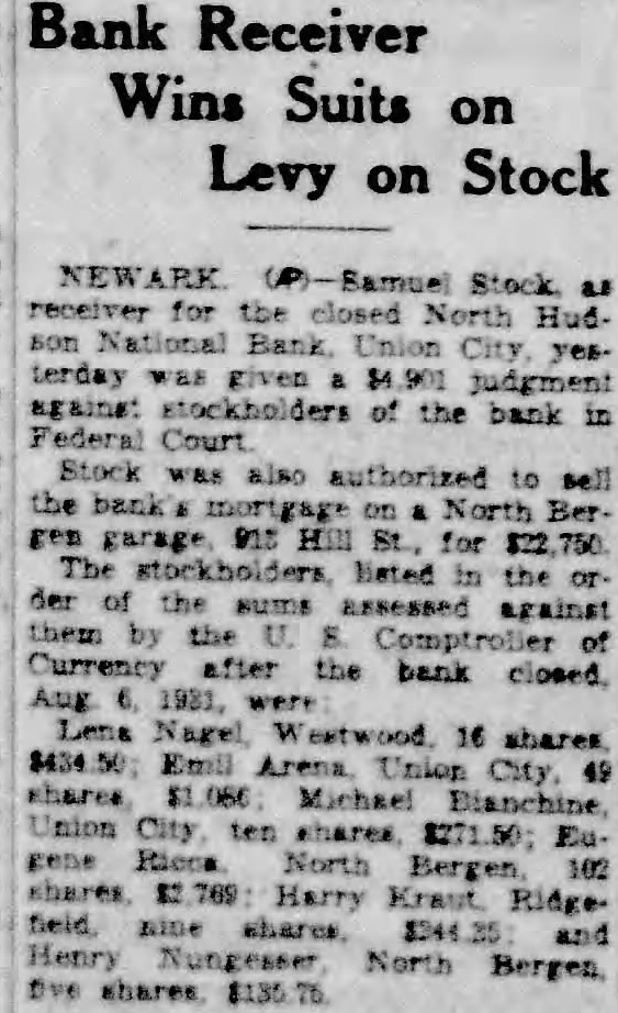Bank Receiver Sells Debtors' Property Judge WilClark today Samuel Stock, Receiver National Bank North Hudson, Union City, for $7300 property owned William and Margaret Thorborg, Union City. The proceeds the applied obligations the Thorborgs the bank.