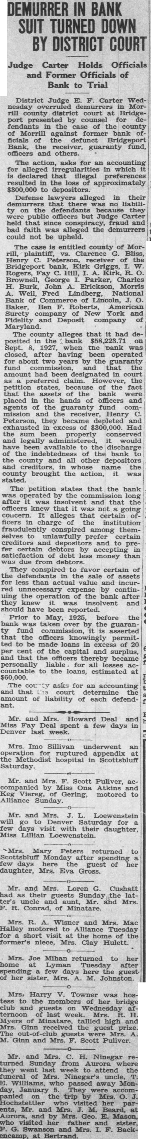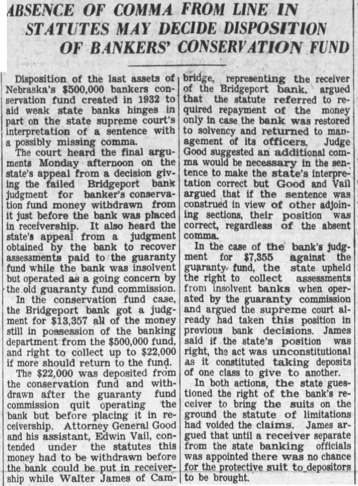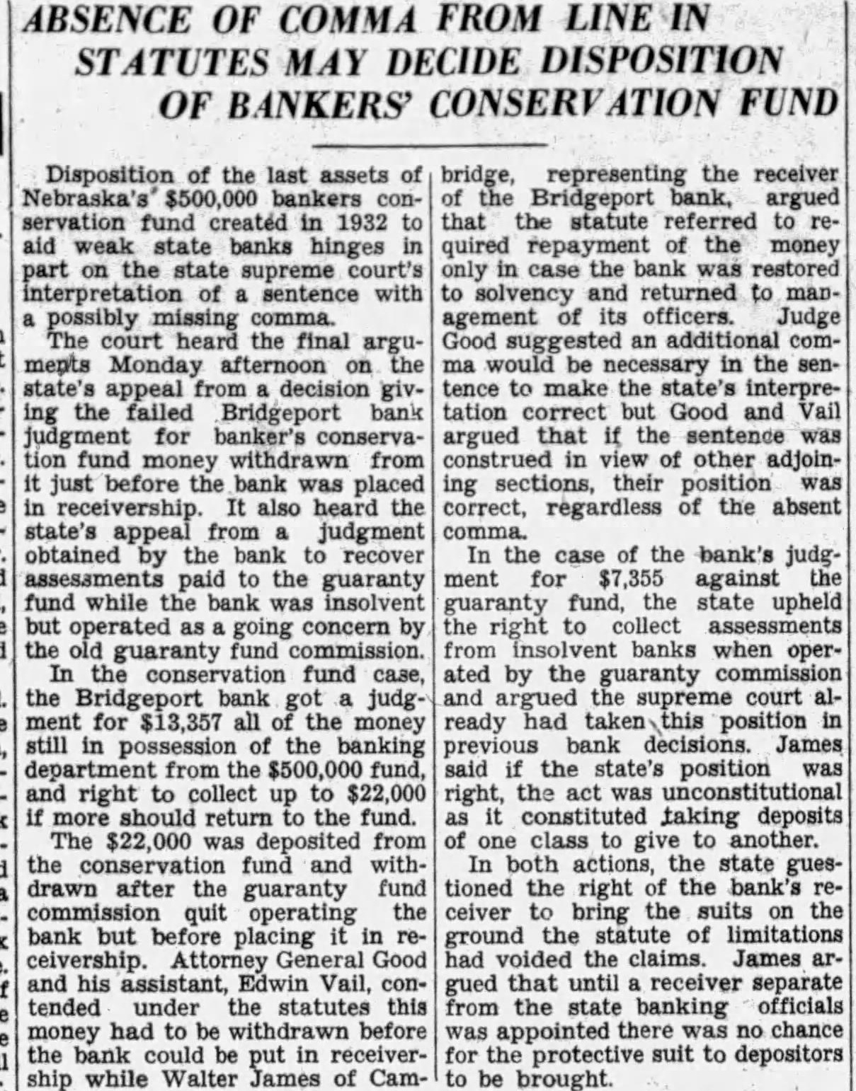 Heard before Goss, Rose, Dean, Good, Eberly, Day and DAY, This suit for an accounting brought by Morrill county as depositor of the Bridgeport bank, its behalf and on behalf of all other depositors similarly situated, against the members and agents of the guaranty fund commission of the state Nebraska. The guaranty fund mission took possession of the assets and business of the Bridgeport bank the 15th day of May, 1925, and it concern until the going 8th of September, 1927, during which period deposits solicited and loans made, the accepted, bank's paper was discounted, deposits withdrawn, and all the functions of bank were performed. It leged by the plaintiff that, while the bank was so operated, large amount of deposits were withdrawn, unlawful preference between depositors, the amount of which is unknown to plaintiff and only ascertainable by an accounting. The plaintiff alleges that, during this perof operation by the guaranty fund commission, certain permitted, and which moneys, were fact loans and therefore general claims, were withdrawn, and that the bank was, in fact, unlawfully liquidated while unlawfully operated as going concern. The gist of the action pleaded by plaintiff is in the petition as follows: by reason of the foregoing facts the assets of said bank placed in charge of the defendants who were members, officers and agents of the guaranty commission have become and depleted in in excess of which sum, had said assets been properly and legally administered, would have been available to the discharge of the indebtedness of said bank to this plaintiff and all other depositors and creditors ilarly situated." The trial court found in favor of defendants and entered decree in conformity to its finding, from. which appeals. This is the second appeal filed in this case. The first appeal was taken from decree entered February 1932, and motion for new trial, filed within three days, was overruled May 1932. Defendants filed motion to dismiss this appeal for that no cost bond had been filed and no cash deposit to cover costs or supersedeas bond had been filed as required by section Comp. St. 1929. appearing from the transcript that cost bond had been filed within days from the final order, as providby statute, in conformity to the rule announced by this court in Greb Hansen, Neb. 426, the former appeal was dismissed September 26, 1932, for lack of jurisdiction. On August 29, 1932, during the 1932, term of court, the trial judge in Morrill county, not at the county seat but at Bayard, set aside the order of May 1932, overruling motion for new trial, and the motion was submitted to him and overruled. Later, September 14, 1932, the court at Bridgeport, the county seat of Morrill county, again set aside the order of May 1932, overruling the motion for new trial and, on consideration, the motion was again overruled. on September 1932, the plaintiff's attorneys claim they learned for the first time that the decree of February 1932, had been signed by the trial judge at chambers in Gering, Scotts Bluff county, and was sent to the clerk of the district court at Bridgeport, who entered it on the journal, showing that had been signed by the judge at chambers at Gering, Nebraska. At that time plaintiff filed motion that the decree of February 1932, be held to be void and be set aside on the sole ground that the decree was signed by the trial judge at chambers in Gering, Nebraska, stead of in open court at Bridgeport, Nebraska, and that the motion for new trial with drawn and all orders relative thereto be expunged from the record. October regular day of the May term, the court sustained the motion and reentered the same decree, and overruled plaintiff's motion for trial, filed the same day. This appeal was taken from the decree and order overruling motion for new trial entered October 1932. The appellees, except Bliss, filed motion in this court to dismiss this second appeal for that the transcript was not filed in this court within three months from the rendition of final judgment; that it is an appeal from judgment entered October 1932, which decree is identical with dated February 1932, except the date, from which an appeal was dismissed, and that the reentry of the judgment on October 1932, was for the sole purpose of extending the statutory time perfecting an appeal to this court. This motion to miss the appeal was argued before this court and ruling thereon reserved until the case was submitted upon the merits. demands consideration first. As heretofore noted, the original decree in this was signby the trial judge at chambers at Gering, Scotts Bluff and county, transmitted to the clerk of the trict court for Morrill Did county. this render the decree The judges of the various district courts, have no inherent authority chambers except such they are expressly given by law. The stitution provides: several of the courts of record shall have such jurisdiction at chambers be provided by law. "Const. 23.