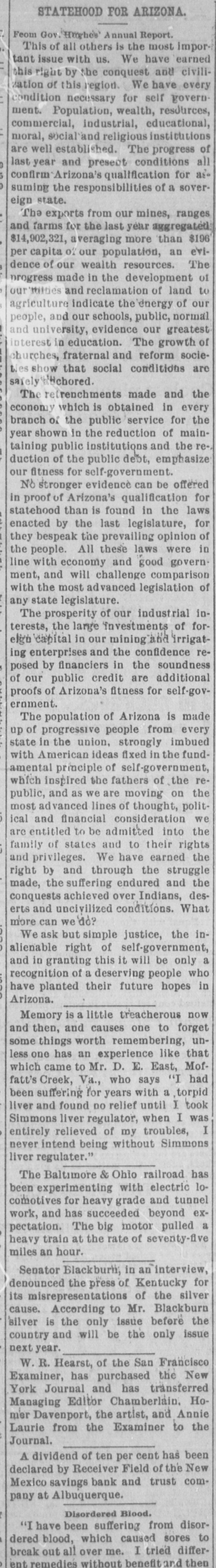 COURT CULLINGS. Qui bene distinguit, bene docet. He ho distinguishes well, learns well. The Dawson case is still on trial in the tf district court. Henry G. Coors has filed attachment suits against C. C. Fitz Gerald, of Santa Fe county, in the sum of $463.60; also, against Michael Ξ. Kean, for $1,202.74. Sheriff Hilario Romero has had his accounts for grand jury subpΕnas approved in the sum of $197.65, and the clerk has issued a warrant on the court fund in his favor for that amount. Dave Newman, of the short order lunch counter at the Standish place, Bridge street, pocketed $52.75 for meals furnished hungry jurors, who were serving their country in the judicial sweat box. William Monahan has fetched divorce proceedings against bis wife, Mollie Monaban, up in Colfax county, on the allegations of harsh and unbearable treatment. The wife resides at Downsville, Wis. Mrs. Laura Burchinal, of Colfax county, has instituted a suit for divorce from her liege lord, Fred E. Burchinal, who is at present a resident of Minger, Colo. She alleges cruel and inhuman treatment, drunkenness and failure to provide. The report of Judge O. T. Toombs, of Clayton, special examiner in the divorce case of Rodolfo Polaco against Rosita Polaco, of Union county, has been filed in the district clerk's office and a decree will probably be entered, this afternoon. The seventh dividend of 10 per cent. was received by the Territorial treasurer this morning from Receiver N. B. Field, of the New Mexico Savings Bank & Trust company, at Albuquerque. It amounts to $802.09, and goes into the special court fund.-New Mexican. San Miguel county will get her portion of the fund tied up in the Albuquerque national bank. The sum of $6,000 comes to the fourth judicial district, of which amount Mora county will probably get the lion's share, owing to the expense attached to the Doherty trial, over there. Mrs. Kate Martin has brought suit for divorce against her husband, Rice Martin, down in Guadalupe county, alleging abandonment since 1893. The last known place of residence of the defendant was at Cripple Creek, Colo., where he was passing under an assumed name. In the case of the Maxwell land grant company against J. B. Dawson, the same having been on trial in the district court for several days, Frank Springer is assisted in the prosecution by Capt. L. C. Fort, and A. A. Jones appears for the defendant. The case will likely not be given to the jury until late to-morrow night. Argument of the motion for a new trial in the case of Josephine Deserant, administratrix, against the Cerrillos Coal railroad company, wherein the plaintiff was awarded $25,000 damages on account of the loss of her busband and two sons, in the "White Ash" coal mine disaster, was commenced before Judge N. B. Laughlin, in the district court, at Santa Fe, yesterday. Messrs. Field and Clancy represent the plaintiff and R. E. Twitchell represents the defendant company.