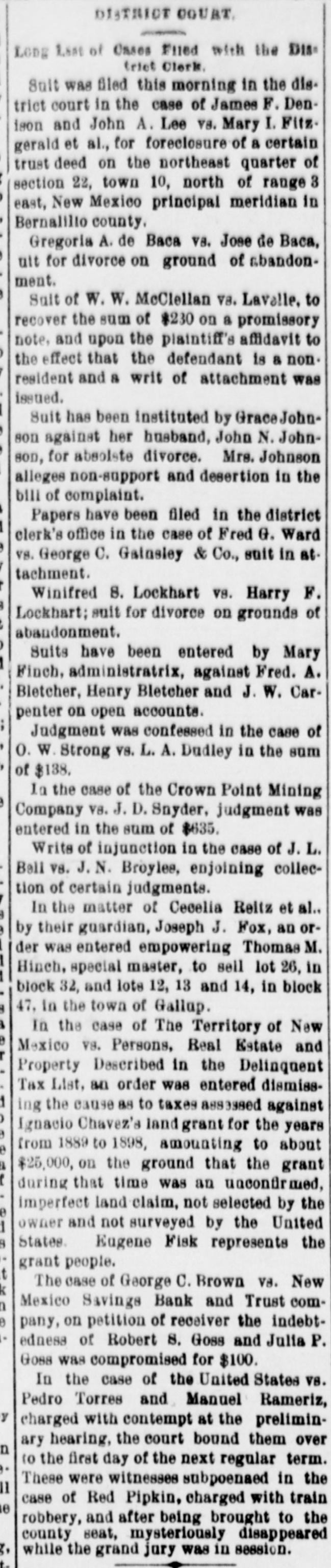 Whereas, Said James Sanches has failed to pay any part of said sum adjudged to be paid by him to said Charles E. Newcomer, receiver of said New Mexico Savings Bank and Trust company of Albuquerque.