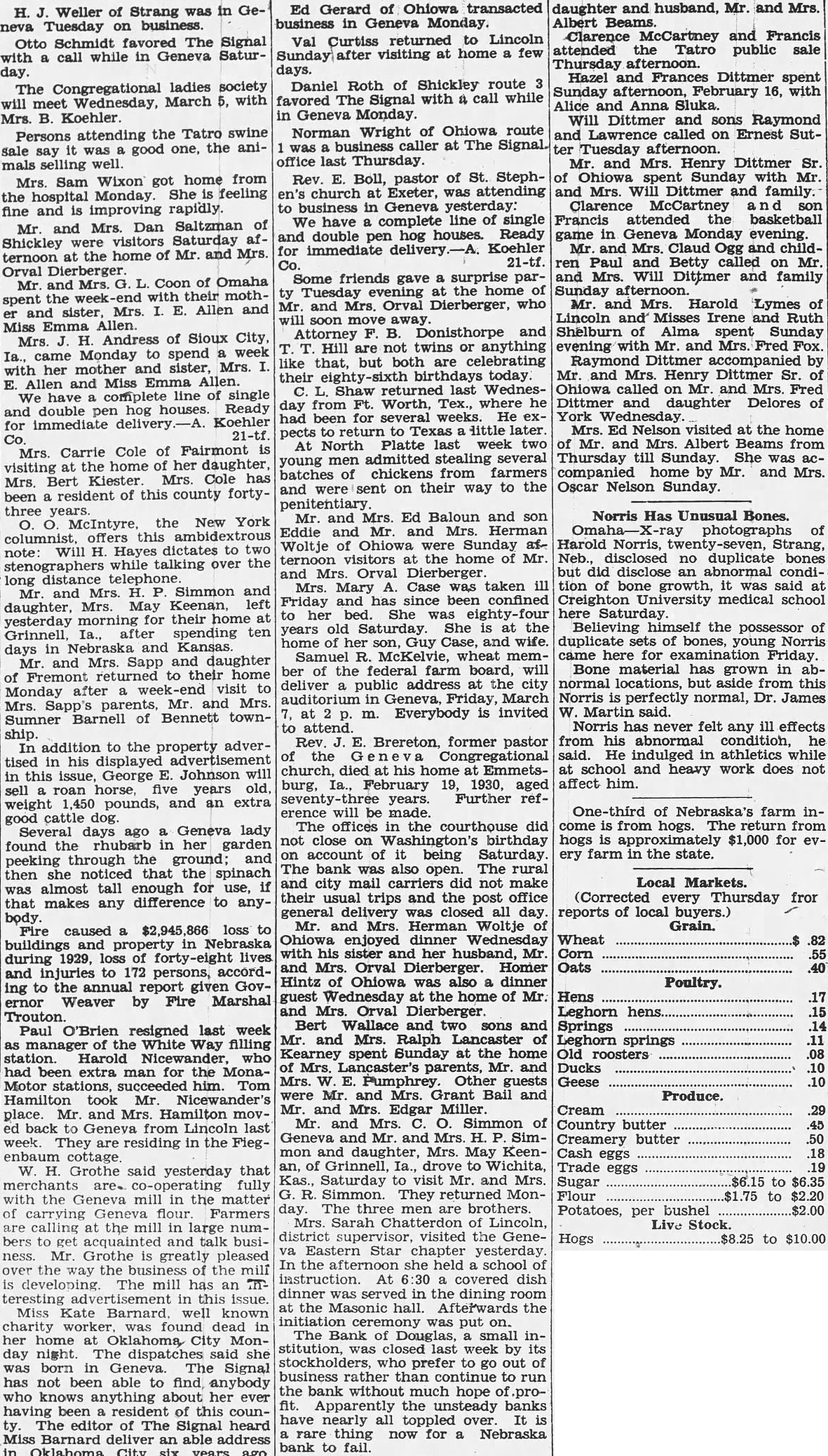 District court. Bert Ryder VS. Northey Mf'g. Co. Judgement on demurrer entered. John VS. Heber E. Malone. Account: Cause dismissed John McCarthy, adm., Edward D. Bartling, et al. Foreclosure: Defendant Bartling given 14 days to plead. Nebraska City Building and Loan Ass'n. vs. Charles Lowe, et al. Forclosure; Defaults entered against defendants. Hearing to court Finding for plaintiff and decree of foreclosure entered as prayed. In the matter of the guardianship of Frederick Herman Behling. Sell realty. Sale confirmed. Nebraska City Building and Loan Ass'n. George W. Hall. Foreclosure: Cause dismissed as to plaintiff. Luella Cook VS. Ralph A. Duff, et al. Foreclosure: Trial had to court. cause and taken under advisement. D. West, adm., vs. Roy Ferguson. Foreclosure: Cause dismissed at plaintiff's cost. Velma Hall VS. Emmett Hall. vorce: On motion of plaintiff cause is dismissed. Ira Burke vs. Henry Darby, Annulment: On motion of plaintiff cause dismissed. Lena Pratt. et al, Mary Mozell, et al. Partition: Sale confirmed.