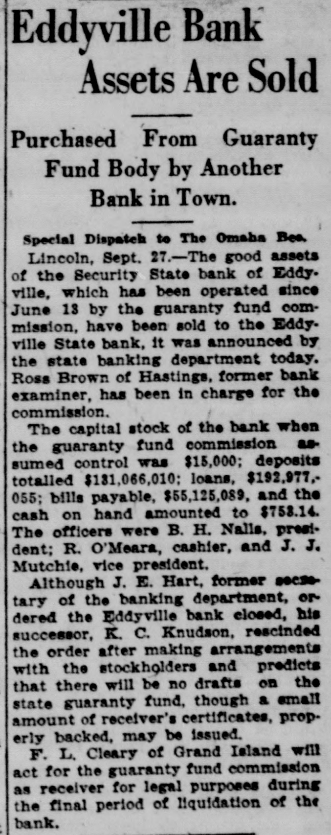 "Mr. Robert O'Meara, "Security State Bank, "Eddyville, Nebr. "Dear Friend: "On your business mailed into the office for