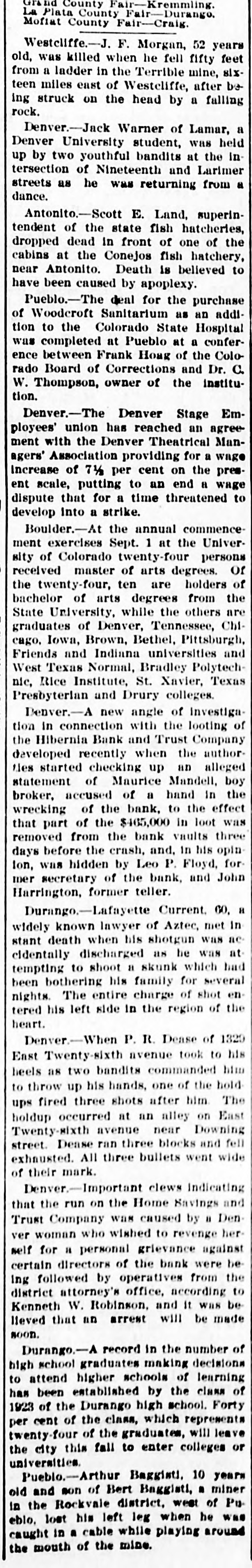 Fort Collins. Fifteen students received their degrees from the Colorado State Agricultural College here, Wednesday, at the first regular commencement and conferring of degrees ever held in Fort Collins, at the close of a summer session. The students' petitions for degrees were approved last spring by the State Board of Agriculture, with the condition that they fulfill certain requirements during the summer session.