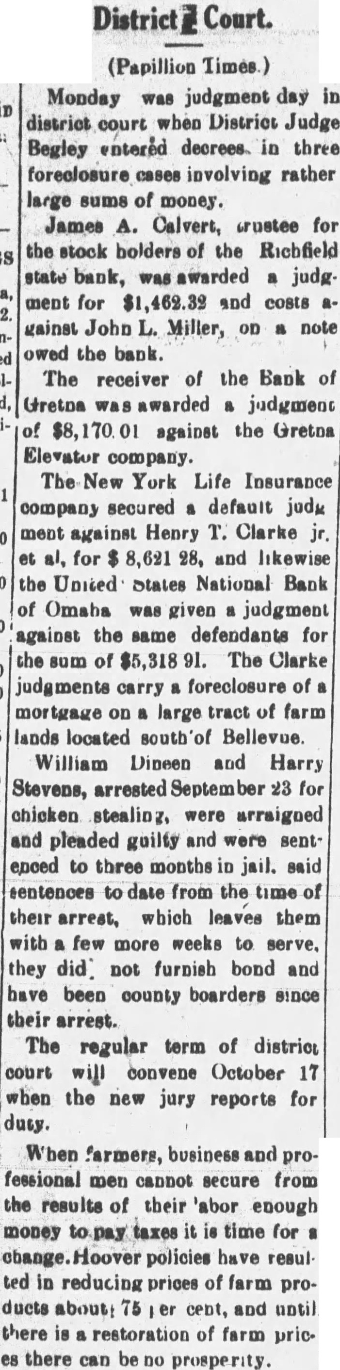 Henry Mooding, prominent Chalco farmer, spent a few hours in Gretna Tuesday.
