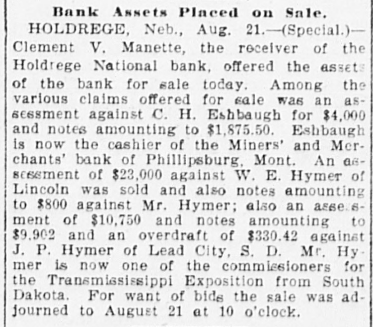 roumarinf in nst the outlaw, "Cherokee Bill," of y of murder. He received the vere 4111 s. Waldron, the white wife of Chief kfoot, has lost in her second effort sluth, Minn., to secure land under llotment law. She is not regarded Indian as contemplated by law. è Holdredge, Neb., National bank ailed and the comptroller of the ney has taken charge. The bank capital stock of $50,000. No stateof assets and liabilities has been P e north bound Houston and Texas ] our 18 peddoss 11 SE 'upear 1 on of the Missóuri, Kansas and Texve miles north of Dallas, Tex., was up by seven highwaymen who, howsecured no money. epidemic of grip prevails in Lynn, -00 there quotxe UB 01 " t present at least 500 cases. Physihave reported upward of 200 new since Sunday. There have been pers suome especially ] 'e nd Duke Alexis Michaelovitz is The deceased should not be conted with the Grand Duke Alexis of a, the uncle of Czar Nicholas 11. of puoces Ajuo SUM UEUI prop " n of the Czar and but little is know n 'u nday Miss Anna Gould. daughter of te "Wizard of Wall Street," became Countess de Castellane. The wedequal 'ouo 180m e SBM am us place 1001 quot ng-room of Mr. George Gould's 1001 , fight made on Omaha gamblers municipal corruptionists by the Vice League reached a sensational when William Donnelly, a leading ler, admitted before the grand jury -mord e 04 bribes u! 000 '2$ pred JUIA city official. uenza has taken hold of the people rlin with a strong grip. The milder er appears to have favored its d. In fact, according to statistics e local sanitary bureau, threeis of all the sickness in the city at 01 enp SI 10 Vest Greenland expedition has been -word equ JO uosees the JOJ p movers in it are largely New- Yorknd Brooklynites, although Philala, Boston, Princeton, and Chicago ach furnish its quota of scientific pue 'Aeuom 'SJa THIS JeANS 18 has struck another rich streak of the 2,100-foot level. It runs from eye 01 silver JO seouno 000'00 04 The last shipment to the smelter - UOO 0.10 state 4214 suoi 001 JO per g gold. silver and copper. onto, Ontario, has been visited by rd disastrous fire within a month. lobo was destroyed on Feb. 6. the dby Building on Feb. 10, and now on' immense drygoods establishsix stories high, only recently sujna Bujuing 10 mass E s! 'p Nebraska legislature has decided ive the beet-sugar bounty by paye producer $5 per ton for all beets ced. The last legislature suspendslaw. The house had a great fight he affair. The bill was opposed by quepuedapuj pur democration puo spatch from Constantinople says in consequence of charges preferred rks twenty-five young Armenians recently arrested and twenty-one add 81 11 w he arrests have produced a painful ssion which may lead to additional bances." friends of the proposed amendto the Illinois law of libel achieved al victory in the house and sent 9q IIIM 11 reading 14116 12 01 11 ssed this week and probably put on issage in a fortnight or less. Its es of getting through the house are lingly good. re arein St. Joseph's hospital. in ewa Falls, Wis., ninety patients ave received injuries in the woods. of them are verv serious. Thurs-