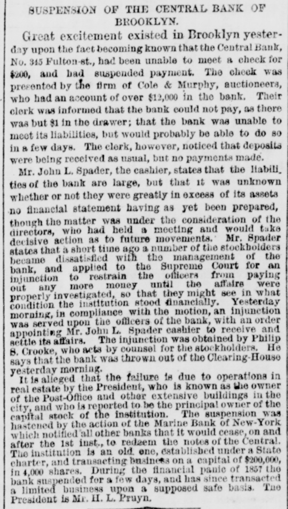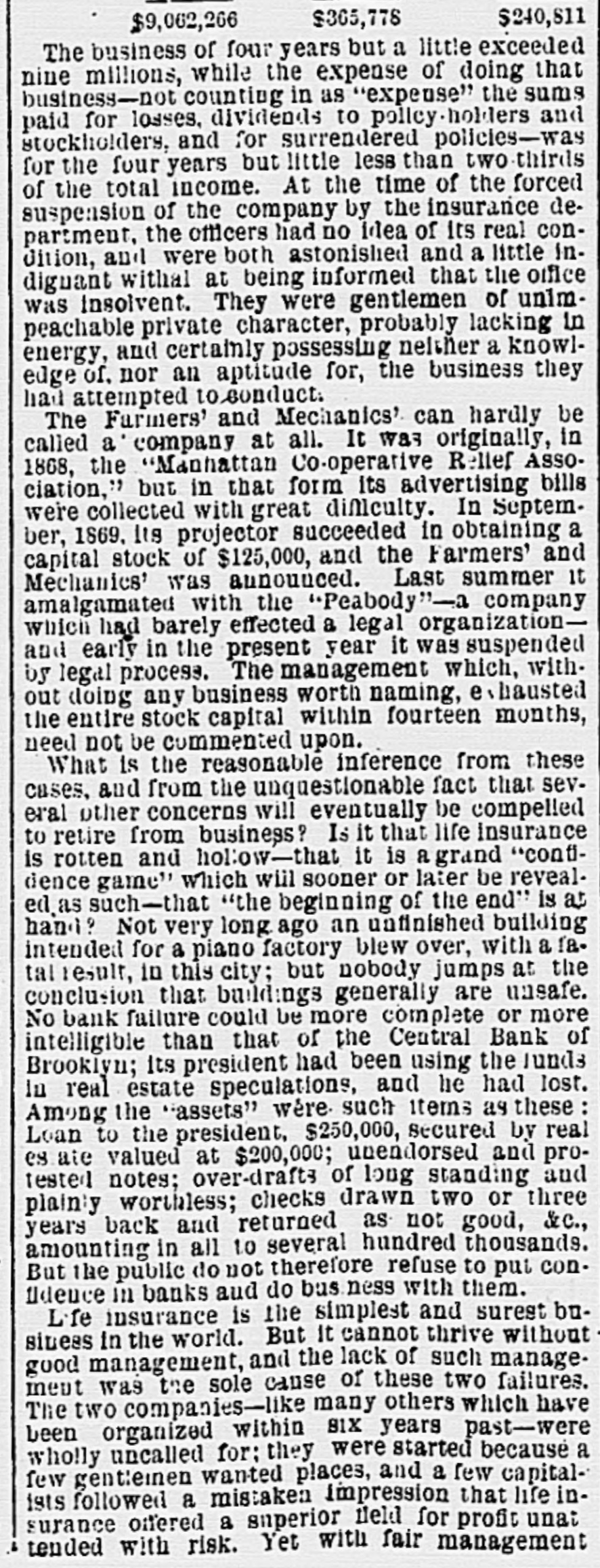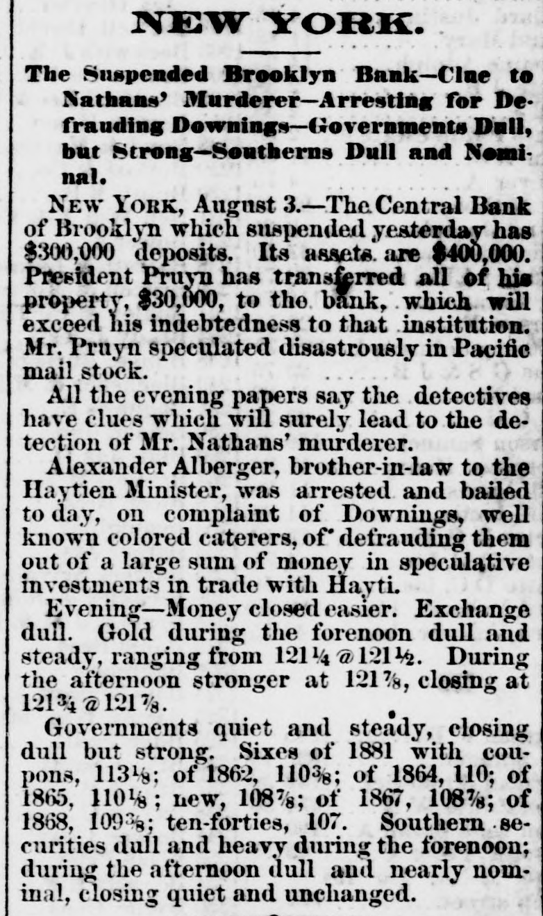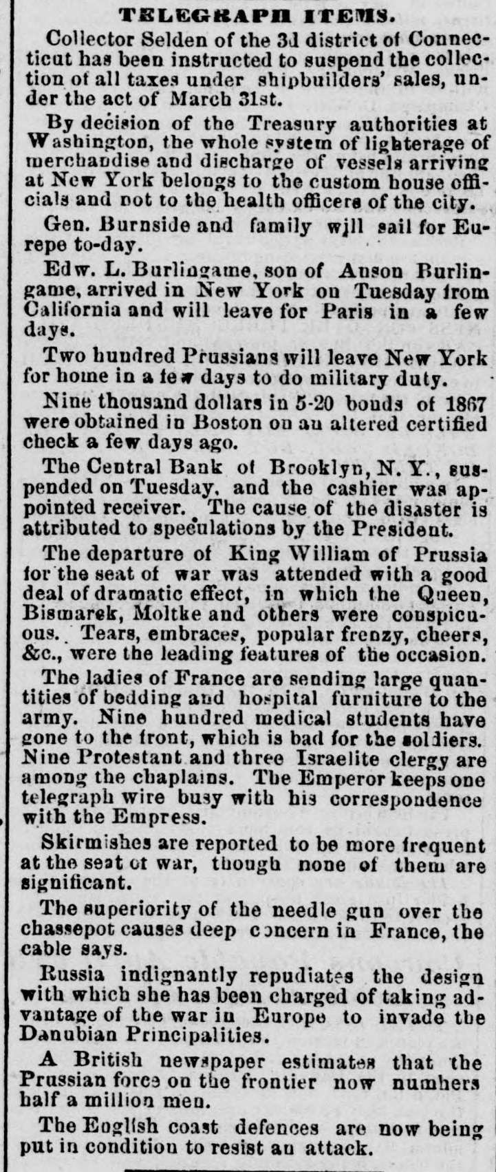 NEW-YORK CITY. The Société Alsaecinne-Lorraine, last month, aided 76 Alsacian and Lorrain immigrants, at an expense of $894. Protection and advice was afforded to 150 others at Castle Garden. Judge Tappen's decision commanding the Boards of Kings and Queens County Supervisors to collect their quota of the State deficiency tax will be reviewed before the general term of the Supreme Court at Brooklyn, in February. In the United States District Court, on Saturday in the collision case of Daniel Owen and others agst. The Brig Annie Lindsey. Judge Blatchford directed the entry of a decree for the libelants with costs, and the usual order of reference to ascertain damages. This decision establishes the rule that a brig being in the wind, and close hauled, "18 bound to keep her course." The Bloomingdale Turnverein, in its annual report just issued, shows that the organization numbers 150 members? and has a capital of $12,000. The Turn school, established by the society, is attended by 175 boys and 38 girls. The officers for the ensuing year are: First Andres; Second Speaker. Jos. Laber; Secretaries, Mylins and H. Ridder; Treasurer, Fr. Flocken and Ferd. Wieler; Instructors, Kessler and J. Gose: Librarian, Lev. Schurr; Trustees, Jos. Berndt H. Templer, and Fr. Flocken. It is understood that all the conductors of the Harlem Railroad have tendered their resignations, to take effect on Thursday next, the directors having issued a new order requiring them to keep check books of their receipts, and give punched ticket to each passenger paying fare. The conductors consider such an evidence of distrust of their honesty as too marked and humiliating to be quietly submitted to. Joseph H. Havens, a depositor in the late Central Bank (of Brooklyn, recovered, on Saturday, a judgment against the assigner for $3,125, the amount of a deposit made in the bank after it had become insolvent, the plaintiff being ignorant of the fact. Judge Pratt in his decision held that aside from any technical point it was clear that the officers of the bank, in receiving the check without disclosing the condition of the bank, committed fraud upon the plaintiff, and obtained therefore no title to the check in question. BROOKLYN. Arrests last week, 344; taxes collected, $121,139 73; deaths, 182. Under a new regulation of Sheriff Williams visitors to the jail are now searched. and all intoxicating liquors taken from them. Liberated thieves are also prohibited from visiting their companions in confinement. A serious dispute has occurred in the Mormon Church, in the Eastern District, and the adherents of Brigham Young have ejected a member of their society for openly condemning polygamy. The leaders have organized a new branch, and style The Recognized Church of Jesus Christ. They met in Cosmopolitan Hall, yesterday, and listened to an address from one of the saints on Polygamy an Abomination in the sight of God." Tax-Collector Burrows has persistently refused to obey the law, it is alleged, in relation to the prompt payment to the Treasurer of moneys collected for taxes, and has withheld a balance of $964,903 03 for unexplained reasons. Controller Schroeder addressed a communication to the Collector regarding the matter, on Saturday, and said deem it my duty to demand and hereby do demand that you forthwith pay over the Treasurer of the city the sum of $964,903 03 due to the city, and now withheld by you contrary to law." The Collector says that it utterly impossible to pay over the Treasurer on the day of receipt all tax money, and that though the Controller may demand as often as he pleases, it will make no difference to him. LONG ISLAND. RIVERHEAD.-Judge Reid will hold Surrogate's Court here to-day Charles Serrell of New Village was brought to the county jail for theft a few days since. SOUTHOLD.-A special town meeting is to be held here to decide whether the Legislature shall be asked for an act bonding the town in $10,000 for building a town hall. HEMPSTEAD.-The new Treasurer of Queens County has opened an office at Freeport. STATEN ISLAND. NEW-BRIGHTON. - A coroner's verdiet of death from natural causes was rendered in the case of John Fion, who, it was alleged, had been killed by one Wilton, a bar-tender in Castleton-ave. FACTORYVILLE-I firemen were testing their new steam-engine, on Saturday, Michael Gorman was struck and dangerously injured by the nozzle of the hose. At the same time a boy (Joseph Joice) was seriously scalded about the neck and legs by steam escaping from the boiler. HUDSON RIVER COUNTIES. YONKERS.- The authorities of the new city intend to apply to the Legislature for some amendments to their charter. The principal changes proposed are to make the State, county, city, and school taxes payable at one time and place, and that the sales of land for non-payment of taxes shall be held here instead of at White Plains-that the Receivers of Taxes and Assessors, with the consent or approval of the Common Council, shall be appointed by the Mayor. POUGHKEEPSIE.- The Hudson River ice-cutting is now actively going on. There are nearly 7,000 men and 1,000 horses gathering the ice. which averages 11 inches in thickness. They are taking in about 9,500 tuns per day. The crop for the season, it is estimated, will reach 1,500,000 tuns. and will all be gathered by Feb. 1. MORRIFANIA.-The following have been elected officers of the Morrisania Saving Bank for the ensuing year:Win. Cauldwell, President John McLaughlin, Vice-President; E. B. Fellows, Secretary; H. P. De Graaf, Treasurer. YORKTOWN.-Henry Paterson has been appointed Postmaster James H. Purdy resigned. NEW-JERSEY. JERSEY CITY.-N. T. Cummings of No. 42 Morris-st. has been arrested by a New- York detective, on a charge of complicity in the recent silk robbery at the Williams & Guion steamship wharf in New-York. A water-pipe attached to the boiler of a kitchen range in W. Lewis's residence in Summit-ave. exploded on Satfurday and demolished the range and the windows