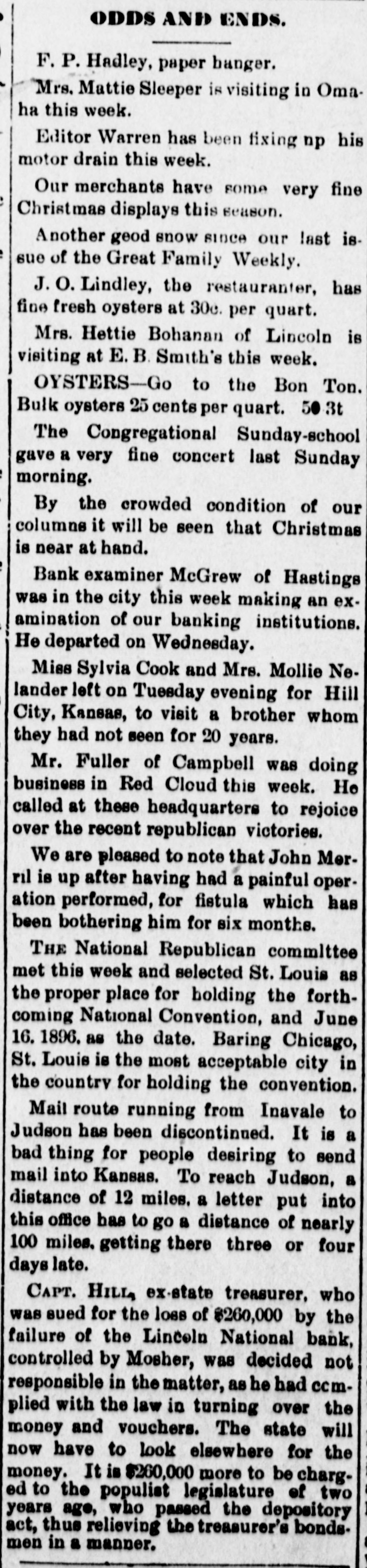"Im a prosecutor, not a banker," he smiled, and he referred the correspondent to Mr. Barkley at the LaSalle hotel.