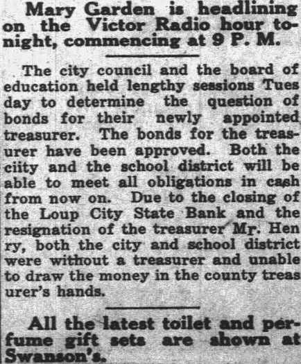 Notice is hereby given that by virtue of an order of sale issued by the Clerk of the District Court of Blaine County, Nebraska, in an action wherein Bennington County Savings Bank, Bennington. Vermont, a cor poration is plaintiff and W E Henry whose real name is W. Eugene Henry, Jessie M. Henry, John Doe, whose real name is Earl L. Sears, and Mary Doe, whose real name is Ida Sears, Defendants, Clarence G Bliss, Secretary of the Department of Trade and Commerce of the State of Nebraska, Receiver of the Loup City State Bank, a corporation, of Loup City, Nebraska, Intervenor.