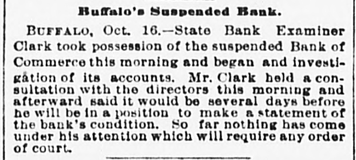 TALK OF WALL STREET. A favorable prospective feature is the likelihood of no gold exports from here next spring, due to heavy accumulations of exchange now. The Omaha has earned a dividend on common stock and many directors expect a dividend, probably small, will be declared in January. The surplus for the stock for the year will be in excess of $500,000, which will be enough to pay 2½ per cent. The Vanderbilt contingent is bullish on Omaha and higher prices are predicted for it. Burlington will probably get above 80 on this rally. Omaha gross increase, $726,524 for year to date; last year's surplus, after dividend on preferred, $348,258. Earnings for Northern Pacific, third week of November, decrease, $97,942; from July 1, decrease, $85,533. ANTHRACITE POOL. NEW YORK, Dec. 2.-The agreement entered into on Feb. 1 of this year by the presidents of the anthracite coal mining and carrying companies, at the instance of powerful financial interests, will expire nominally on Jan. 1, 1897. At the time of the agreement, however, it was arranged that the contract would run on subject to thirty days' notice from any interest. There is the best authority for the statement that no notice of withdrawal has been filed, and that none will be. The companies for the first time in the history of the anthricite trade, kept faith with each other absolutely, and all interested looked confidently for the banner year of the industry. The well-laid plans were, however, nullified to a very large extent by the continued depression in general business disturbances in the money market and anti-election agitation. The first six months of the trade were very poor, as the agreement did not really become operative until June, and the tonnage for the year, as compared with 1895, will show a heavy falling off. Recently business has been very light, more particularly at tide water, where prices, with the single exception of chestnut, which has been in fairly good demand, have been and are now being cut twenty-five cents below the nominal September circular. Trade is now improving under the stimulus of the colder weather. but officials of the various companies agree that the best that can be expected in the present month is to get up to the September figures. BANK CLEARINGS. St. Paul-$783,990.63. Minneapolis-$2,537,632.75. New York-Clearings, $141,915,611; balances, $9,639,947. Boston-Clearings, $20,682,991; balances, $2,334,961. CLOTHING FAILURE. BOSTON, Dec. 2.-The assignment of the wholesale clothing firm of Whitten-Burdett Co., of this city, is announced today. An account of stock is now being taken, and a statement of assets and liabilities will be prepared as soon as possible. NEW YORK MONEY. NEW YORK, Dec. 2.-Money on call, easy at 1½2@2 per cent; last loan, 2, closed 1½2 per cent. Prime mercantile paper, 4@5 per cent. Sterling exchange easier, with actual business in bankers' bills at $4.861/2@4.86% for demand and $4.83%@4.83% for sixty days. Posted rates, $4.841/2 and $4.871/2@4.88. Commercial bills, $4.83. Bar silver, 651/8c; silver certificates, CHICAGO MONEY. CHICAGO, Dec. 2.-Money steady at 6@7 per cent. New York exchange, 60c premium. Foreign exchange firm; demand, $4.86%; 60 days, $4.83%. TREASURY STATEMENT. WASHINGTON, Dec. 2.-Today's statement of the condition of the treasury shows: Available cash balance, $224,814,190; gold reserve, $131,651,631. FOREIGN FINANCIAL. NEW YORK, Dec. 2.-Evening Post's London financial cable: The stock markets were quiet and irregular today. The chief feature was the rise in Americans, which were more active than for several days past. As cabled on Monday, the buying of Americans here in the last two days has been of a good kind and today prices shot up from the opening, New York prices supporting the rise here. The close was at the best. RUBBER DIVIDEND. NEW YORK, Dec. 2.-The United States Rubber company has declared a dividend of 4 per cent on preferred stock, payable Jan. 15. Action on the dividend on the common stock was deferred until Oct. 23. TWO RECEIVERS NAMED. BUFFALO, N. Y., Dec. 2.-Justice Childs today appointed Henry H. Parsons, of East Aurora, and John R. Hazel, as receivers for the Bank of Commerce. The officials and a majority of the stockholders of the bank opposed the appointment and urged that the Fidelity Trust and Guaranty company be appointed to wind up the bank's affairs. A bond of $100,000 will be required from the receivers.