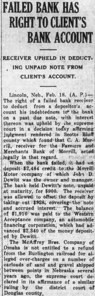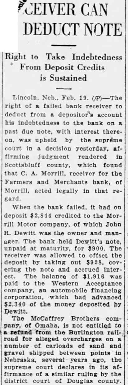 REVERSED AND DISMISSED. STATE, EX REL. CLARENCE A. DAVIS, ATTORNEY GENERAL, V. FARMERS & MERCHANTS BANK OF MORRILL. WESTERN ACCEPTANCE COMPANY, CLAIMANT, APPELLANT, V. CHARLES A. MORRILL, RECEIVER, APPELLEE.