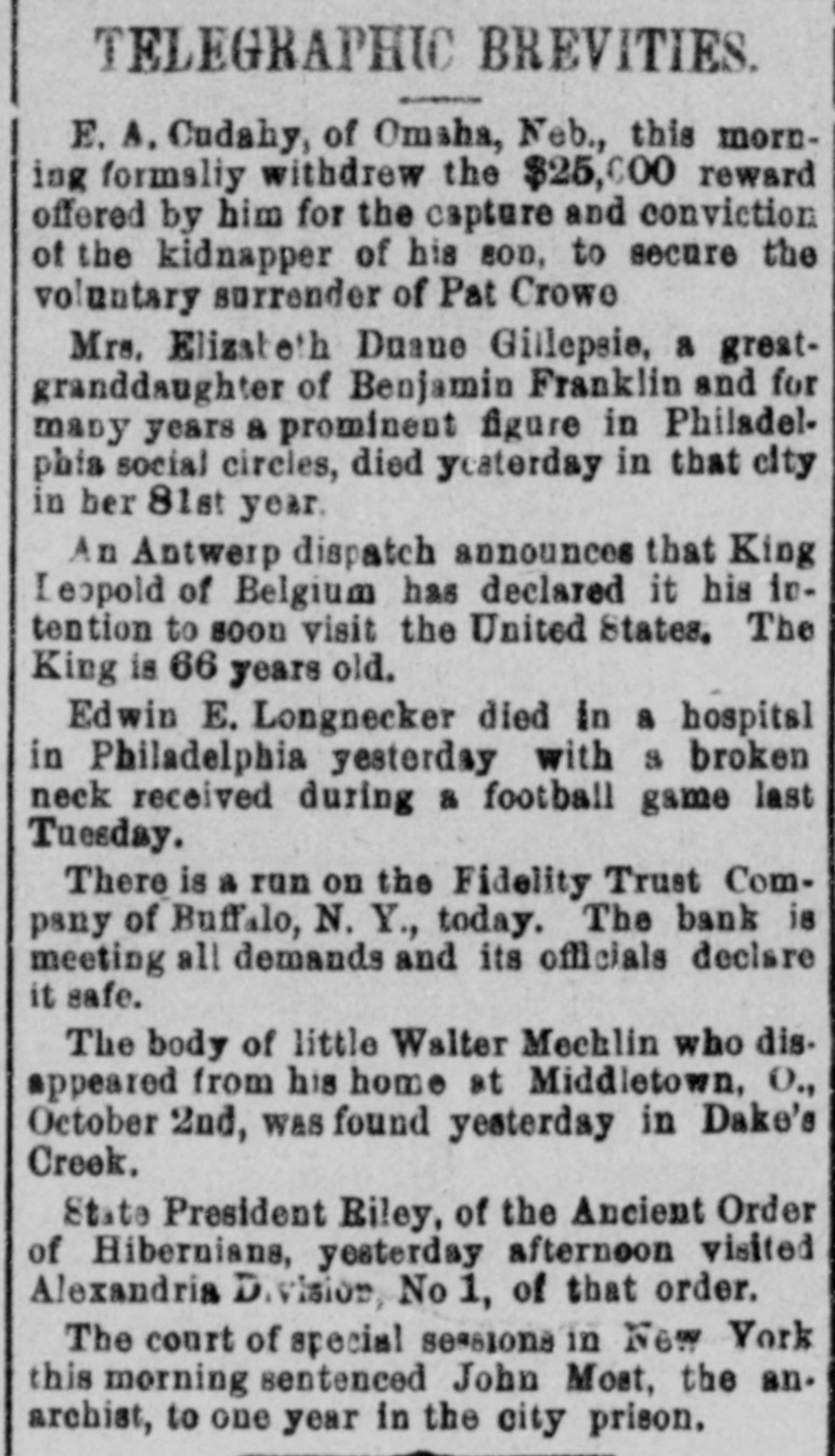 A run by small depositors on the Fidelity Trust company of Buffalo was met by the assistance of the banks of the city to such an extent as to cause the Fidelity company to stop it as they had enough.