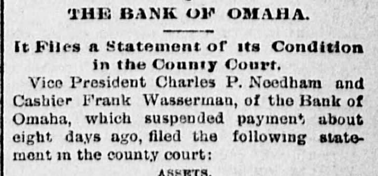 Seven-year-old Artemus Kilkenny, son of John Kilkenny, was one of the depositors of the Bank of Omaha who appeared in county court yesterday morning to file proof of claim. The lad had saved from his earnings $7.65, and acting on the advice of his father he deposited it in the late lamented bank.