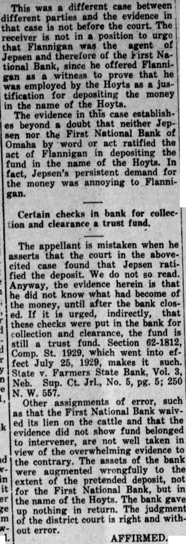 CASH BANK INTO SALARY CENTRALIZE ENVELOPES SUPPLY (Continued From Page bankers said. Most of the accounts are deposits of the cash received by large firms, they clared, although some individuals appear who may have had cash in deposit boxes. CHECK ON NEW FUNDS The First National bank had about $140,000 in this new count business Thursday, and was permitting checking against these accounts. These checks were identified with ber stamp reading, "This check drawn on funds deposited March subsequent thereto. Government checks and postal money orders received deposits. The Omaha National had about $90,000 the "new account business, 80 far had arrangements for The accounts strictly for the care cash, with all made by the depositor the counter Other banks had smaller sums in the ledgers. The state banks Nebraska not Woods rules and regulations under The difficulty with the banks' reopening many stances that their funds largely deposit in national banks Omaha "reserve center" and in other reserve and subreserve centers Unthe holiday state banks could deposit their reserves directly with the federal reserve state bank has account the payment would deplete its draw the federal reserve but would have draw national where its reserve deposited Mr. Earhart of federal reserve said he had ing whether the national bank could grant the pay roll withthrough the state bank but would be optional the officers of the national bank LINCOLN RATIONS PAY All Lincoln banks ing limited withdrawals cash their depositors Thursday for the payment salaries and wages, the purchase of food and medicine, special emergency needs permitted under the regulations laid down by Secretary of the Treasury Woodin Officers the pect to reopen for regular busisoon Congress enacts the legislation asked by President the Lincoln Clearing House association made customers of various banks found that they could obtain currency in limited amounts for their immediate needs. each establishment tell ers were receiving checks and paying out cash within specified conditions Regulations governing withwere altogether uniform the downtown banks The hope voiced by their officers that day would bring general "business as usual throughout the country First National, Vice President Maly said checks drawn upon that bank in payment salaries wages were being paid presentation up to $25 each. Individual depositors being permitted to out apiece for necessities.
