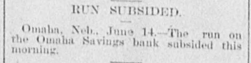 the heaviest run was on the Omaha Savings Bank, acknowledged to be the soundest concern in the city, where all depositors were paid in cash.