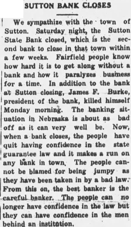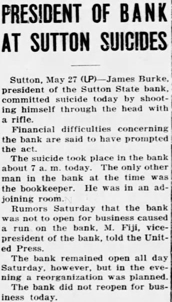 The Sutton Register stated last week that were apparently complete the reopening of Sutton State bank this The bank at the time the death its president few weeks ago.