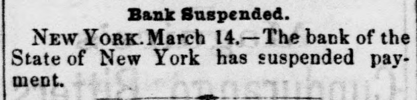 THE BANK OF THE STATE OF NEW YORK The bank of the State of New York has suspended payment and closed up.