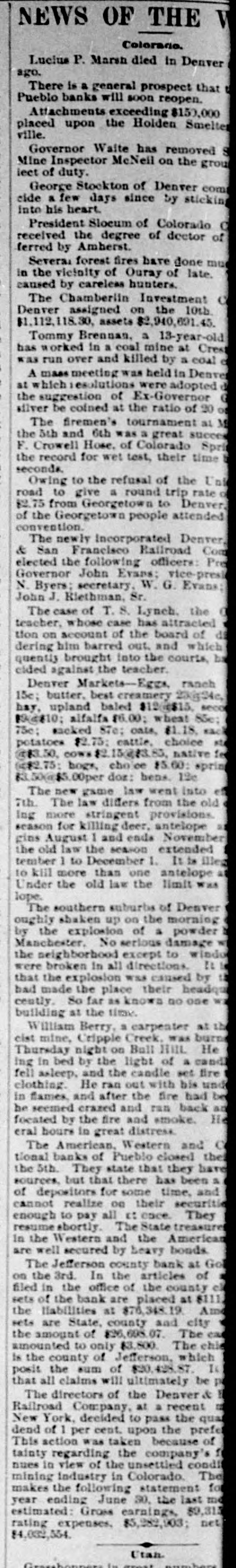 THE American national bank of Leadville, Col., with liabilities of $342,000, the First national bank of Cisco, Tex., and the Jefferson county bank at Golden, Col., with liabilities of $76,000, closed their doors.