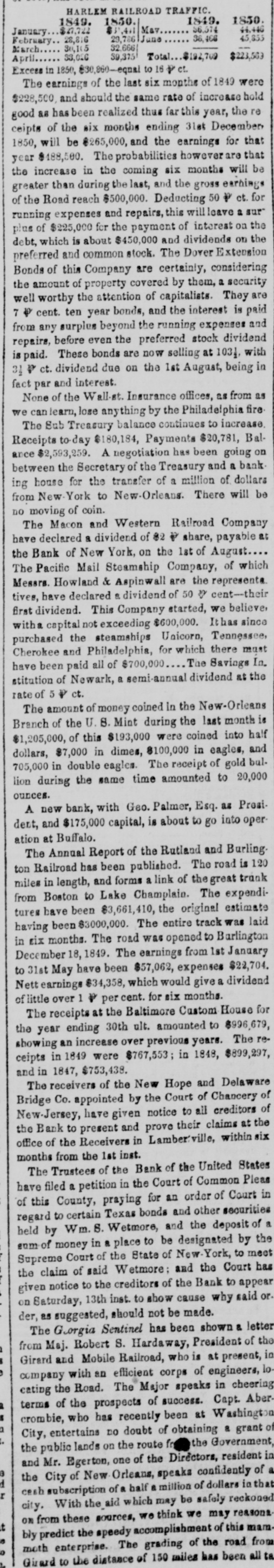 Miscellaneous. Republican Office, Savannah. Jan. 24, 1842. From Florida. By the arrival of the U. S. steamer Newborn, Capt. McNuity, we have advices from Florida to a late date. The news is not important other- wise than of a cheering nature. Correspondence of the Savannah Rep. Big Cypress Swamp, So. Fa. January 6th, 1842. After Major Belknap routed the Indians on the 25th ult. and replenished our fam- ished haversucks, he divided his command into four divisions for the purpose of cov- ering a greater extent of country at the same time, and renewed the chase in the direction of the Southern coast. The country traversed by these several divi- sions was, even to a greater extent than heretofore seen, covered with water and extensive cypress swamps; but the few fudians here finding that their most ob- scure and inaccessible retreats were now penetrated by the troops, scattered so much as to render their trails invisible even to the practised eye of the Indian guides. I don't believe troops ever labored hard- er, or endured more privation, since the world began. The incessants marching with heavy burdens of provisions, bedding and ammunition, through water and mud, and over jagged and porous rocks, has torn and worn the clothes from their limbs, und the shoes from their feet. There are thir- teen companies of troops traversing this sunken district, charged with ferreting out some 50 lodian men, women and children. If we were tasked to hunt the wild deer from the hammocks, or the Alligators and suakes from the swamps, we might have hope, but, although the campaign has been contrived with uudisputed skill, and exe- cuted with the greatest alacrity and per- severance, the ludians now remaining are so very few in number, as to elude pursuit with the most perfect ease. In my opin- ion, the war as such is already closed. That roving out-laws, red and white, will for years secrete themselves in the ham- mocks and swamps of Florida, 1 do not doubt. Nor that the army, were it dou- bled, or quadrupled, is doing any good here, have I the least belief. Very truly, yours. The St. Augustine News has advices from Tampa to the 13th inst, which state that Col. Worth is still vigorously follow ing up his operations against the Indians. and is very sanguine of capturing the va- rious struggling parties that are now roam- ing about. The schr. Walter M. Capt, Hitchcock. arrived here on Wednesday last, from Fort Pierce. We learn that an expedi tion, with canoes, under the command of Capt. Vinton, left that Post on the 13th inst., for the head waters of the St. Johns. A scout, mounted, under the command of Lieut. Taylor.accompanied by Lieut. Ste- phens, left on the next day, for the purpose of co-operating with Capt. Vinton.-News 22d inst. ### Correspondence of the Baltimore Patriot. NEW YORK, Sunday P. M. One of our brokers was arrested yester- day upon a charge of negociating com- mercial hills, the names upon which were forgeries-about $8000 has already beer discovered-further no doubt will be known to-morrow. There is no truth in the re- port which appeared in one of our penny papers, that a forged check for $5000 had been passed on the Bank of America.- No such thing was attempted at any bank in the city. The weather is now as fine as possible. We had a gale from the westward on Fri- day, which has done damage to the east- ward. The mail due yesterday was de- tained until this morning. I have heard no further accounts of the ship Frankfort. I am afraid she will be much injured. The city was full of rumors yesterday relative to the recent measures taken by the United States, in seizing and attaching the assets assigned the Bank of the United States, which were in charge of Mr. Fra- zier, as the agent of the assignees. We have taken some pains to ascertain the true state of the facts, and our readers may depend on the following: Uuder a fi. fa., issued from the U. S. Court at Philadelphin, directed to the Mar- shal of this District, all the assets assigned by the Bank of the U. S. were seized, to satisfy a judgment in favor of the Govern- ment for $251,000, most of which assets were in the vaults of the Merchants' Bank for safe keeping; and an attachment was issued, under process from the Commer- cial Court of this city, on a suit entered by the United States, for the sum of near- ly two millions of dollars. What is the foundation of the latter claim, we have no idea, and have no opportunity of icarn- ing. Under the fi. fa. the Marshal threatened to seize the assets belonging to the Mer- chants' Bank; which, if executed, would have been a measure clearly unwarranted by law, as the whole stock held by the Bank of the United States in that iustitu- tion was sold in good faith, and the full consideration money paid by the present proprietors. On application to the U. S. Court, Judge MeCaleb at once granted an injunction to stay the proceedings against the Merchants' Baok under the fi. fa; and Judge Watts issued a similar injunction under the at- tachment. In the mean time the assets assigned by the bank U S. have been ta ken by the Marshal and are now in his charge, and the Merchants Bank and all her business and assets remsin in her owa possession, and her affairs have their cus- tomary regularity, free from any judicial interference,