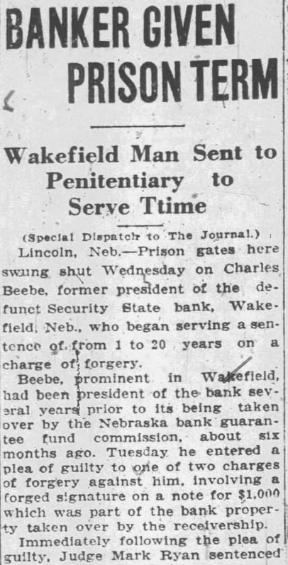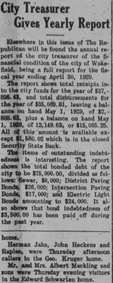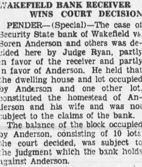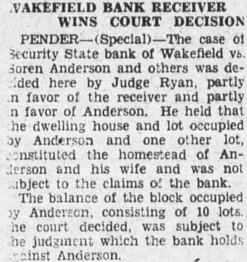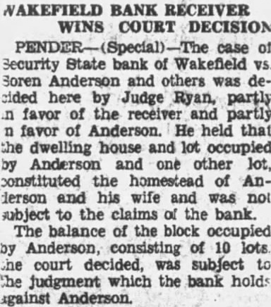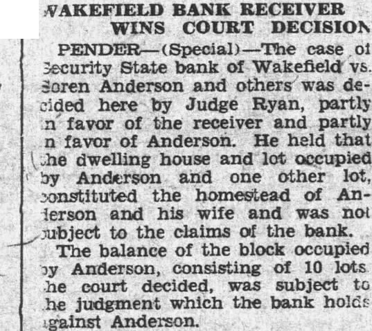 Wakefield Bank Receiver Named The Security State Bank of Wakefield, which has been in the hands of the guaranty fund mission for and half, placed Saturday R. Parker who is in charge Newcastle bank, will also ceiver the Wakefield bank. N. Strunk, who has been here for the guarantee commission, will main charge of assets of the stitution. Creditors will be notified to file claims so that affairs of the bank may be concluded soon as possible. Church Notes. (Rev. W. Taylor, pastor.) Services April 14: Sunday school at 10. Preaching at Subject, "Christ the Rose of Sharon." worth League Preaching Subject, "Christ, the Lily of the Valley." The Ladies' Aid meets in the church basement Thursday, April Services at Pleasant Valley at Swedish Mission Church. (Rev. John Nelson, pastor.) Sunday school at m. Morning worship at English evening service at Wednesday, choir rehearsal Friday, April 19, our sion meeting' will begin at o'clock. Rev. Widen of Wausa and Rev. Leonard Larson of Oakland, have promised to be with us and preach word to us at these meetings. Salem Lutheran Church. (Rev. Martin, Pastor.) This Thursday the Ladies' Aid society meets' Mrs. Bengtson, Mrs. Carrie Bard and Pete Oberg as hostesses. Saturday, at and the Luther girls' chorus practice at Sunday school 10 m. with bible classes for all. English services at Swedish evening services at Presbyterian Church. Sunday school Christian Endeavor members will entertain young people the Methodist Sunday evening. Luncheon will be served and social hour will follow. The regular Christian deavor devotional meeting will then be held. The annual business meeting of the congregation will be held day evening. Fellowship supper be served for families and election of officers and ports of various departments All urged be present the ing pastor will be considered. Wakefield School Notes. Eighteen will be graduated from the Wakefield high school this year. Baccalaureate sermon planned for May and mencement will held May The girls' club met Wednesday evening. The school board, special meeting Monday evening voted provide track at the municipal ball park for of the school students in track work and track meets with other schools. High school girls have organiztrack team for twenty-four Eight have signed up for track work, sixteen for volley ball for indoor Miss Reynolds will supervise the training. Those in the group Helen Swanson, Lorraine Schulz, Blossom Driskell, MarjorDavis, Ruby Rubeck, EvangelCarlson, Ruth Hinrich, Adelyn Sar, Marjorie Driskell, Gladys derson, Evangeline Frances Frances Brown, vian Schulz, Mabel Carlson, Kimbell, Catherine Mitchell, Faith Kimbell,