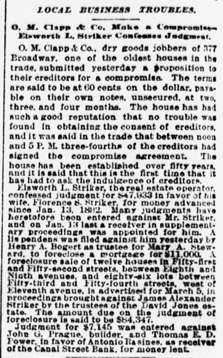 AUDUBON, AUDUBON CO., IOWA, THURSDAY. JUNE 8, 1893 NEW YORK BANK FAILURE. GRAND JURY AFTER BANKERS WILL CALL CONGRESS Plankinton Failure of Milwaukee to be The Canal Street Bank Forced to Ge Investigated. Into Liquldation-Other Failures. SPECIAL SESSION TO BE HELD ERAL NEWS MILWAUKEE, Wis., June 7.-The NEW YORK, June -The Snoe® and IN SEPTEMBER. Grand Jury called to investigat the Leather National Bank gave notice that it would not clear for the Canal causes leading to the many big fires was convened and with it came a senStreet Bank. It was not the regular President Cleveland Sets All Doubts at sation. In deliverir his charge to notice, but merely a warning to other Rest by Announcing that He will the jury Judge Waller read the statbanks not to take any checks on the Summon Congress to Meet Not Later Canal Street Bank. The Canal Street utes referring to the obtaining of than Sept. 15. credit by false pretenses and to the Bank has been hard up for money for acceptance of deposits by banks when some days. The president of the the officials know that the bank is not Canal Street Bank is Antonio Rasires. Booth, the greatest tradegian WASHINGTON, June ?,-The Presiin a sound condition. He told a reporter that the bank was e, died on the morning of the dent said to-day, in reply to a direct The first clause refers to Frank A. solvent, but if it could not get temquestion by a representative of the apartments at the Players' Lappen and the second to the officials porary assistance it would have to go Associated press, that he intended to of the Plankinton Bank. It is said into liquidation. New York, which lie had call an extra session of Congress not The Sheriff received two attachthat Lappen many strange tales The actor's illness had been earlier than Sept. 1 nor later than to obtain money. and directors of the ments against Schaffner & Becker, erable duration, as for weeks Sept. 15, unless unexpected contingenPlankinton Bank knew the bank was brokers and bankers of Chicago, III. cies should necessitatean earlier meeteen on the verge of the grave, shaky several days before it was who assigned on Friday last in favor ing. The President further said: closed. of the following creditors: Benjamin hope of recovery. 'While there has been no mystery Levy & Co., $12,000: Lewis Ettinger, It is said the grand jury will take lure of Hermann Schaffner & for secrecy in regard to my intention up the matter at once and let the fire$1,573. A deputy sheriff served copies in this matter, I think it not amiss k, which occurred recently at of the attachment on the American business go for a later investigation. that our people should be informed bore fruit on the 5th in well Exchange National Bank, where the It is very probable that indictments authoritatively that the time is at will be returned, too, and Fred T. defendants are supposed to have an uns which were precipitated hand when their representatives in account. Day and Lappen will be placed under t, if not every one, of the savCongress will be called upon to deal surveilance. TROY, N. Y. June -The failure of with a financial condition which is the ks of Chicago. All were able The news of the judge's charge the Fort Ann Woolen Company of Fort only menace to the country's welfare rough, though some took adspread rapidly and was greeted with Ann, Washington County. was anand prosperity. It is well for the of rules requiring notice of great favor, it being frequently renounced. The property of the compeople to take up the subject for themval of deposits. On the 5th pany was attached and the mills shut marked that Lappen and the people selves and arrive at their own concluassociated with him had been treated down by the sheriff. s failures occurred throughout sions as to the merits of a financial altogether too leniently. MONTREAL June The publishers ed States. policy which obliges us to purchase of L'Etendard, the French clerical oridle silver bullion with gold taken fire in Omaha a wall fell, RACINE DEPOSITORS SAFE. this city, have assigned, with from our reserve. One does not need liabilities of some $70,000. The assets a number of firemen and citiBank Directors Pledge Their Personal the eye of a financier to see that this are estimated at about $33,000. he ruins. One person was ingold thus subtracted from the GovernFortunes to Secure Them. NEW YORK, B-Morris Schwerin, killed and five others fatally ment's stock is eagerly seized by other RACINE, Wis., June 7.-The direccarrying on business under the name nations for the purpose of strengthentors of the Manufacturers' National of Edward Simon & Bros., trunk, valise ing their credit at our expense. Bank, the Union National Bank and and bag manufacturer, at Newark and result of a conference between "It does not need the art of statesthe Commercial and Savings Bank, 667 Broadway allowed judgment to ller Eckles and the officials of manship to detect the danger that mindful of the uneasy feeling occabe entered against him for The 1 Capital National Bank of Inawaits upon the continuance of this sioned by the recent failures at Milsheriff has taken possession of operation. Already the timidity of is, the comptroller announces waukee and Chicago, held meetings Schwerin's stock. M. Warley Platzke, capital is painfully apparent and none and issued the following guaranty: k will probably resume in attorney for a number of creditors of us can fail to see that fear and ap o weeks. As an assurance to the public and holding claims aggrerating $60,000, prehension in monetary circles will our depositors of the full stability and said to a reporter that the liabilities ternational billiard match teultimately bring suffering to every safety of the banks of Racine and for were about $350,000; actual assets humble home in our land. rank Ives, American champia valuable consideration by us re$200,000. Schwerin confessed judgthink that between now and the ceived, we the undersigned, the direeJohn Roberts, English chamment in Newark