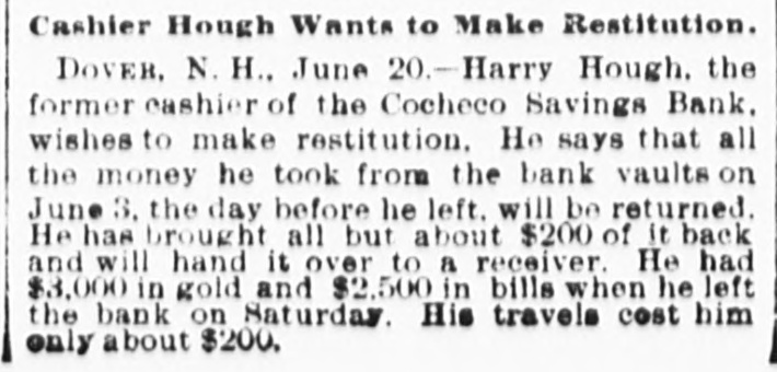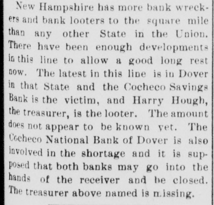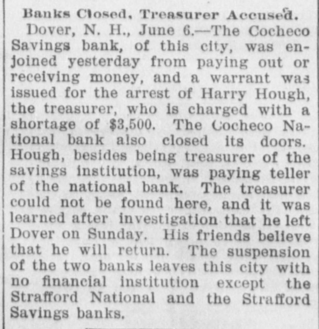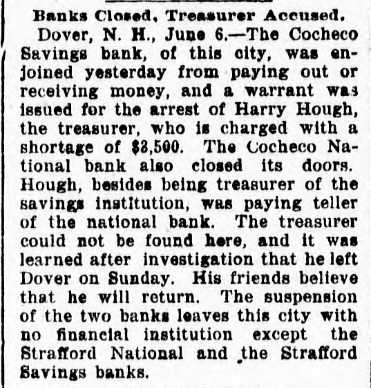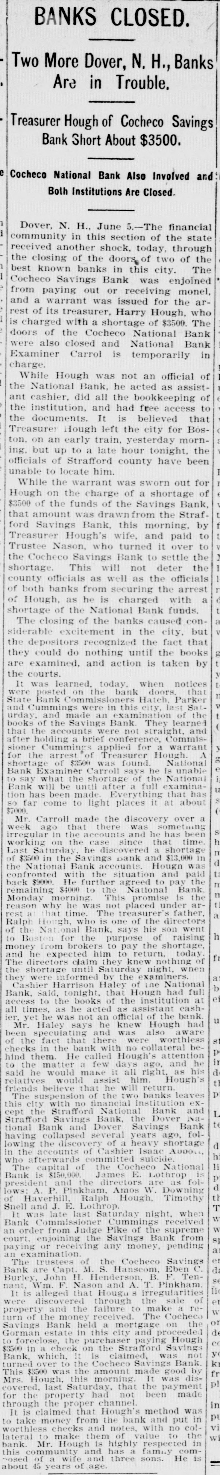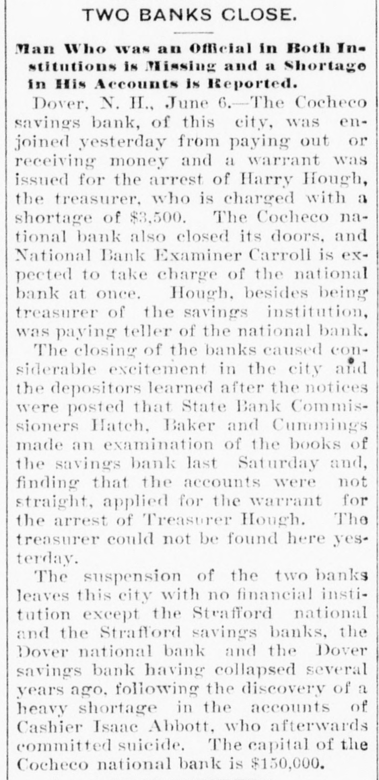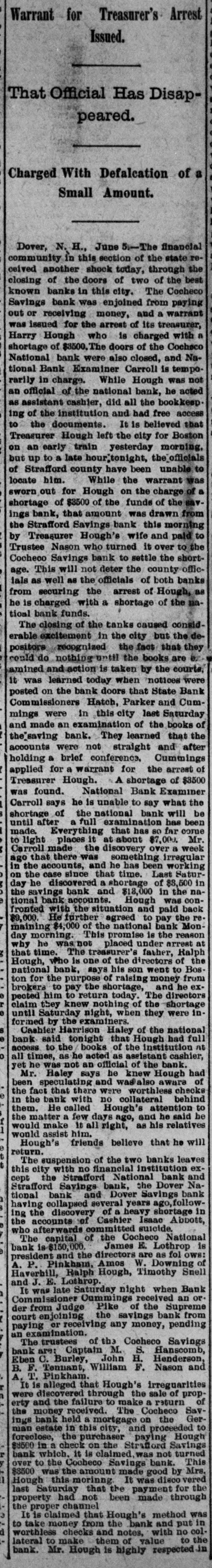 FACTS BRIEFLY STATED. Admiral Dewey's flagship Olympia sailed Tuesday from Hong-Kong for Singapore returning to the United States. Col. R. F. Maddox, head of the banking house of Maddox, Rucker & Co., died at his home in Atlanta, Ga., of paralysis. The Reformed Presbyterian nationa synod decided to meet May 30 next at Ce t darville, O., for their annual conference. Frederick O. Prince, a well-known bank er and former mayor of Boston, died Tues day, aged 84 years. Death was due to lung trouble. The five-ton schooner Coke has saile from San Francisco for Manila. Capt Freitch, the sole occupant of the little ves sel, expects to reach the Philippines in 6 days. The tracks of the White Pass railway will be completed to Lake Bennett by July 1. The schedule time from Puget Sound ports to Dawson will then be about eight days. The exposition of natural and manufac tured products of the south will take place at the Grand Central palace in New York commencing October 25 and ending December 1, 1899. For three days the mercury has regis tered in the nineties in Pittsburgh, Pa Many of the mills have been forced to shut down temporarily, and a large number of prostrations have occurred. H. H. Byrd, of Tallapoosa, Ga., secretary of a colony now being formed in that lo cality for settlement in California, write that the organization is growing fast, and that it will probably comprise some 50 members. Mr. Robert Wallace, liberal, member of the British parliament for East Edinburgh who, while speaking during the debate Monday on the grant to Gen. Kitchener, of Khartoum, was seized with cerebral paraly sis, is dead. The seventh annual convention of the Illinois Printing Crafts union convened in Ottawa, Ill., Tuesday, for a three days' ses sion, representatives from Chicago, Elgin Aurora, Peoria, Springfield, Danville and Ottawa are present. Harry Hough, treasurer of the Cocheco savings bank, of Dover, N. H., has been arrested and the bank closed, a shortage of $3,500 being charged against him. The Cocheco national bank, of which Hough was teller, has also suspended. The fifth annual convention of the Na tional Association of Credit Men opened a Buffalo, N. Y., and will continue for three days. The question of petitioning congress to amend the bankruptcy act will be the most important subject considered. The fifteenth annual meeting of the Amer ican Medical association opened in Colum bus, O., Tuesday. Doctors from all parts of the United States are present, and it is expected that the total attendance will reach in the neighborhood of 2,500 persons The grand lodge of odd fellows for the state of Wisconsin convened in annual ses sion in Oshkosh Tuesday with 600 members present. The state encampment Daughters of Rebekah is also in session, with an at tendance of 30. The sessions last three days. A cyclone struck the southwest part o the town of Ryan, I. T., and totally wrecked two houses. The Davidson hote was partially destroyed. No lives were lost, but a cyclone cellar staved the Shel ton family, whose house was torn to shreds. By direction of the president, the acting secretary of war has issued an order for the reestablishment of the military de partment of Texas and the assignment o Col. Chambers McKibben, of the Twenty first infantry, to command of the depart ment. The cabinet Tuesday transacted no busi