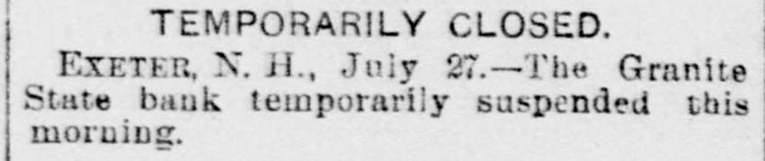 TEMPORARILY CLOSED. EXETER, N. H., July 27.-The Granite State bank temporarily suspended this morning.