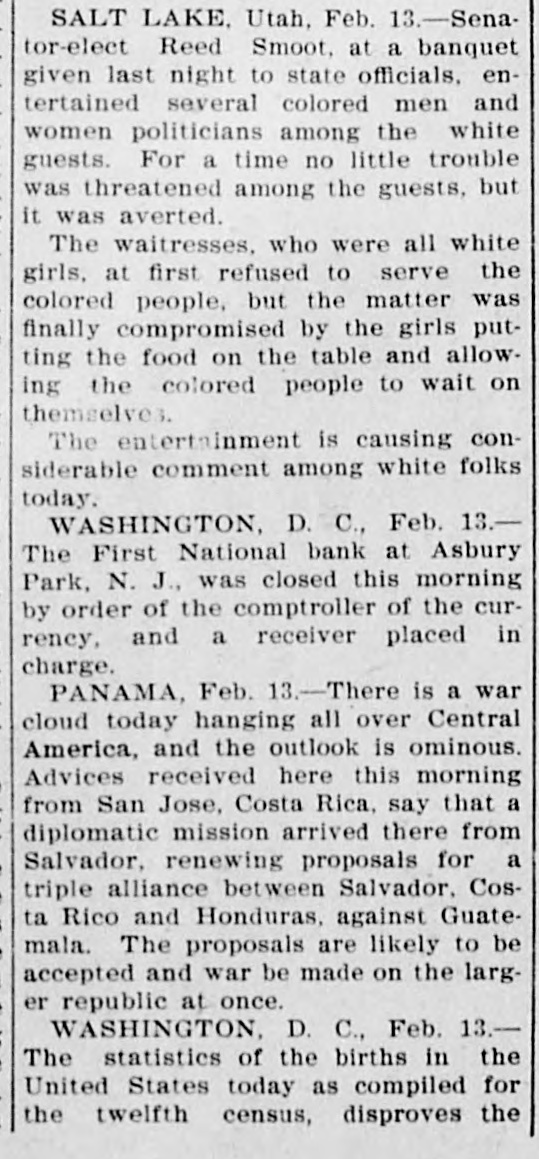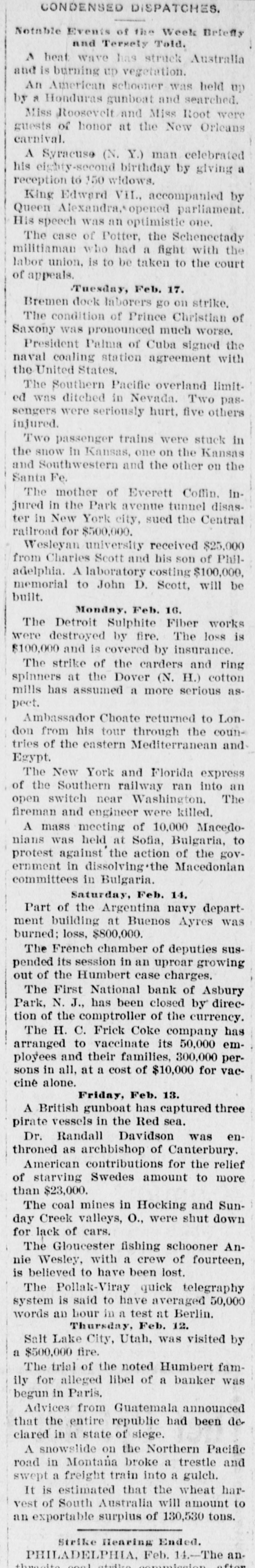 On the 5th, Olvin Gray and Lucy Pine, children of farmers of Union courty, South Dakota, took strychnine and died in each other's arms. They were lovers, and their union was not approved by their parents.