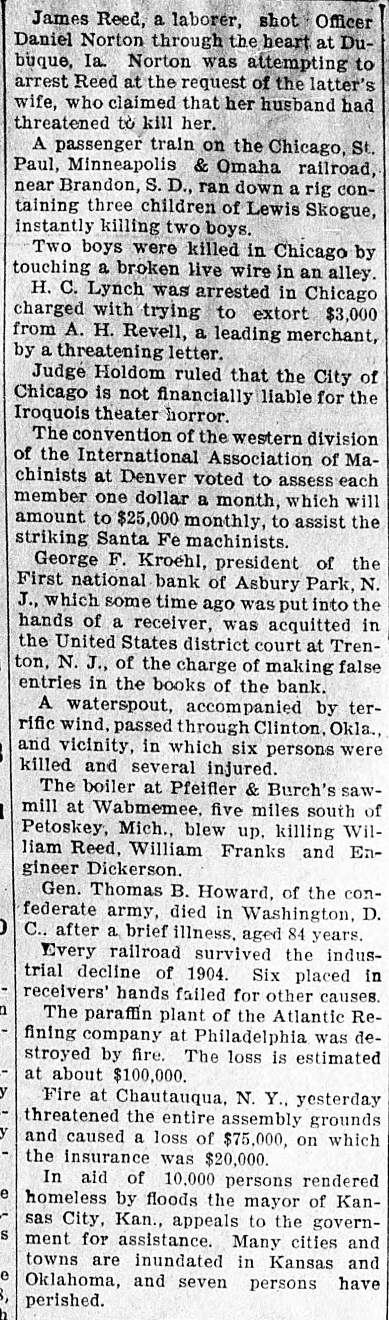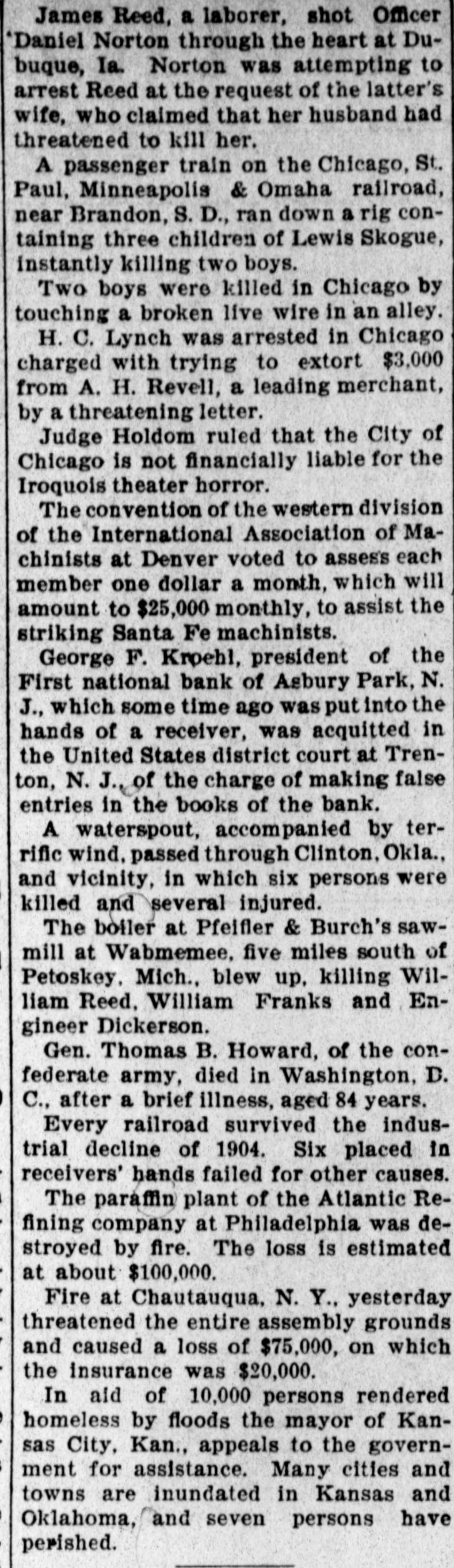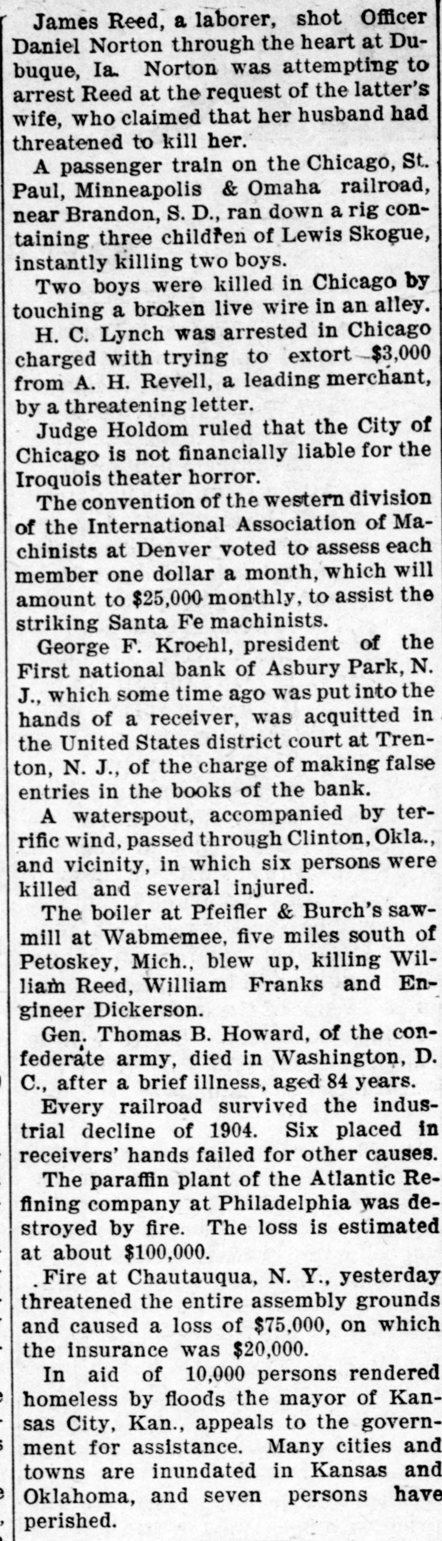 Gen. Jos. H. Lewis, famous as commander of the "Orphan brigade" in the confederacy, dropped dead, on the 6th, at Frankfort, Ky. He was chief justice of the court of appeals for more than twenty years.