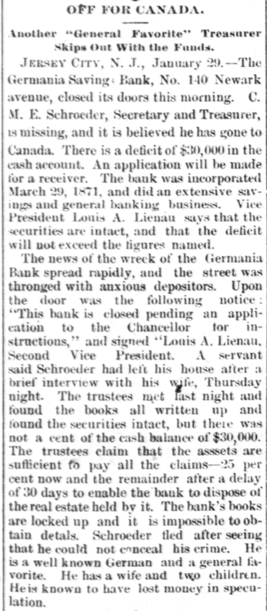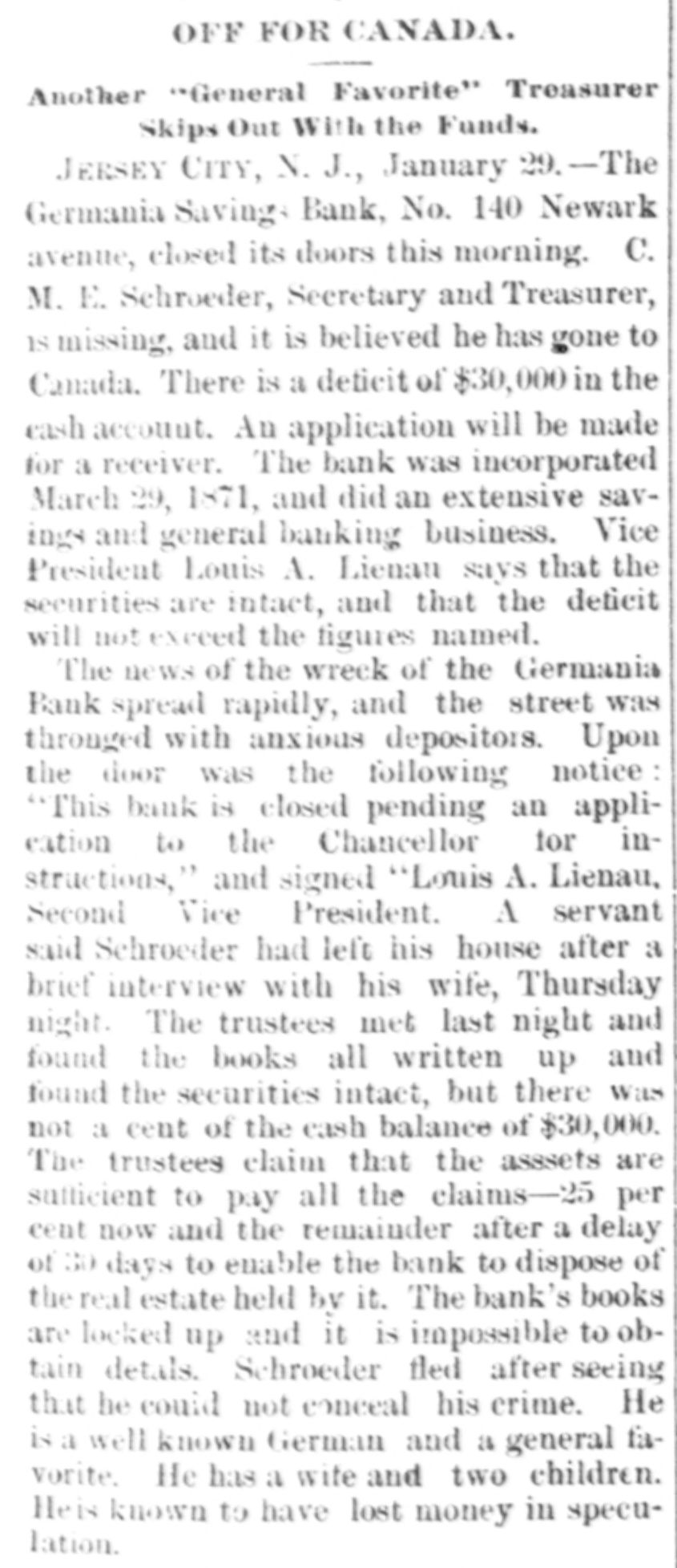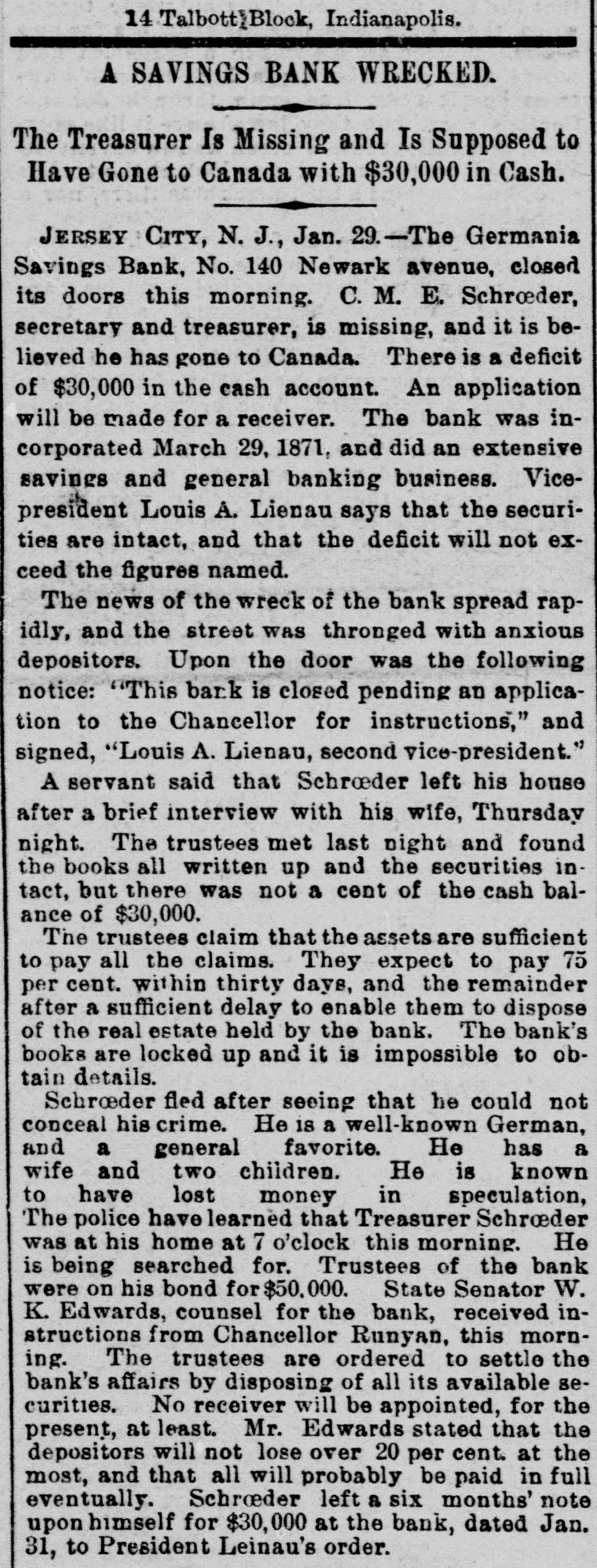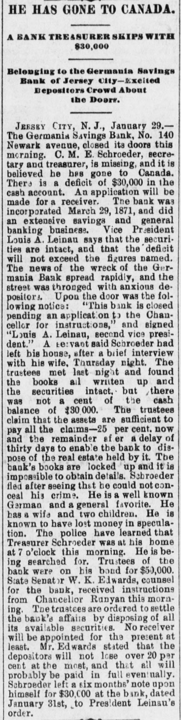 NEWS NOTES. DOMESTIC. The Governor of Ohio has appointel exPresident R. B. Hayes to be trustee of the Ohio State University for the term of seven years, beginning May 14, and the ppointment was confirmed by the Senate. About 200 cases of giant powder exploded while in transit in a magazine car over the Missouri Pacific road a half-mile west of Fort Scott, Kan. Fifteen of the 23 freight cars were completely demolished, and the magazine car was blown to atoms. The engine was badly broken up. A spec'al from Spokine Falls, Wash., says: Terrible suffering exists on the Colville reservation, 80 miles north, smallpox having broken out in the tribe with great fatality. Deep snow has prevented hunting, and government supplies have been inadequate. Hugh Sutherland, president of the Hudson Bay road, !unning from Winnipeg, Man., to Hudson's Bay, announces that the company will spend $4,000,000 the coming year in construction. Ex-Treasurer Hollingsworth of Knox county, Ind., who decamped last May with $80,000 of the public funds, recently created a sensation by walking into the court room at Vincennes, and giving himself up to Judge Mallott. The 'longshoremen's strike in New York and vicinity continues; the estimated nums ber of workmen now out reaches 50,000. Only a few European and coastwisesteamers are able to leave their docks. The jury in the case of Beiral, who was in dicted in New York for attempting to murder Surveyor Beattie last November, have rendered a verdict of guilty. C. J. Winship, constable and collector of the town of Weston, Vt.. has defaulted in the sum of $600, which his bond men must pay. Five of the men engaged in the recent robbery of the railroad train at Gordon, Tex., have been arrested. and the prospect is that the other three will be captured. The great railway suit of Sarah A. Angle against the Chicago, Portage & Superior Railway company at Madison, Wis., for violation of contract has been concluded. The jury rendered a verdict for the plain:iff of $351,965.50. Reports from the west show that heavy snowstorms prevailed in western Dako a and eastern Montana. Trains on the Northern' Pacific railroad and other roads are badly delayed. Black diphtheria is raging near Madison, Wis. The schools at Wanuakee have been closed and the town quarantined. The Little Rock, Mississi: pi River & Texas railroad has been sold under the foreclosure of mortgage, Jay Gould being the purchaser. The price paid was $1,800,000. The road runs from Little Rock to Arkansas City, a distance of 112 miles, connecting w th the iron Mountain road at Little Rock, Ark. Gould was the only bidder. Americans in the vicinity of Lewis' Cove, in Perry, Me., are indignar t at the fact that there are several fishermen from St. Andrew's in the cove, as when the fish seek the other shore the war vessels of the Dominion se ZB any American vessel tound inside the limit. A recent fire at Vanceboro, Me., destroyed the fin large steam mill used by the Vanceboro Wooden Ware Company in the manu facture of kiln dried hardwood lumber. Loss about $40,000; part!y insured. About 100 men are thrown out of employment. Diphtheria prevails to such an extent in Shelter Island, L. I., that the public schools have been closed to prevent its spread. The disease S said to have been brought from Boston. The treasurer of the Germania bank at Jersey C ty has robbed that institution of $30,000, and left for parts unknown. The depositors will be pai 1 in full. The largest and fastest passenger engine ever built was recently run out of the Rhode Island locomo ive works at Providence. During the week ending Jan. 28, 1887, 1278 gallons of soup were distribute and 6102 meals provided by the city of Boston. The reports of corresponding week of this year, show the number of gallons to be 1012, and