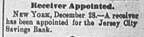 Receiver Appointed. NEW YORK, December 28.-A receiver has been appointed for the Jersey City Savings Bank.