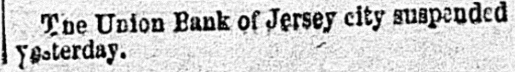 The Union Bank of Jersey city suspended Yesterday.