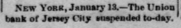NEW YORK, January 13.-The Union bank of Jersey City suspended to-day.