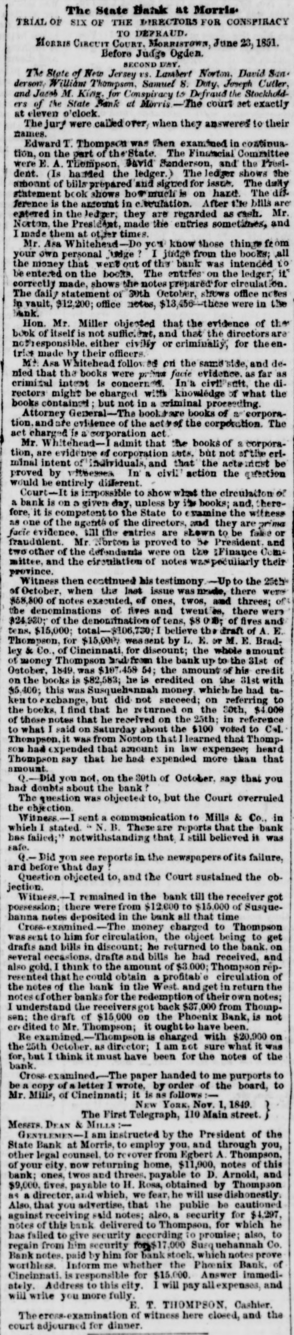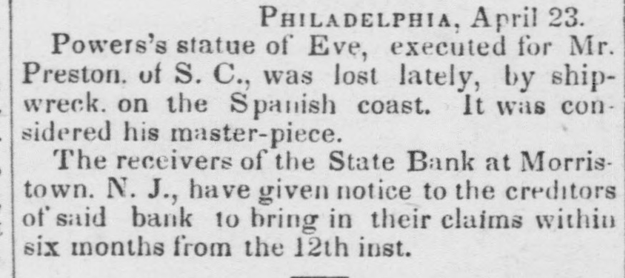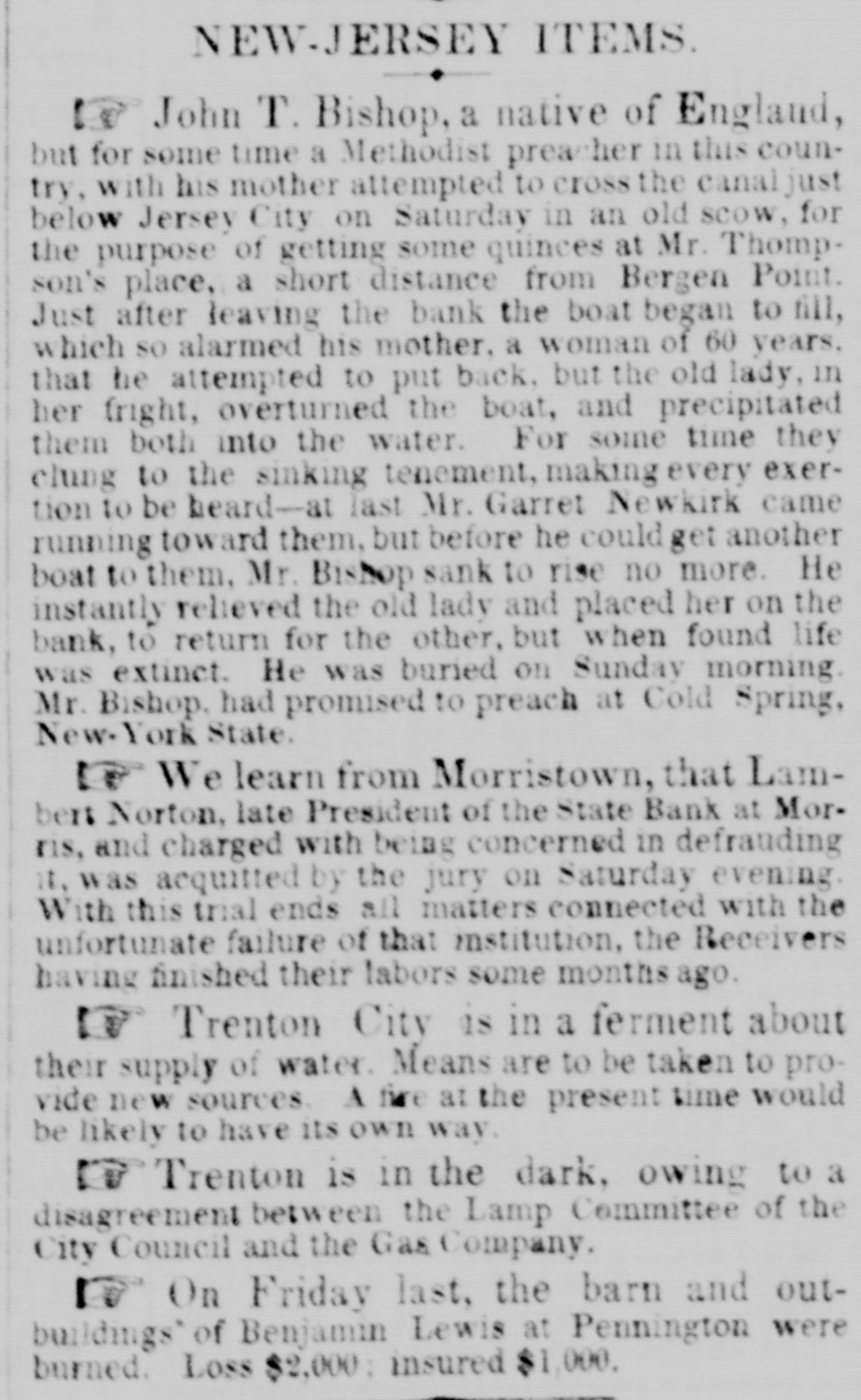 BURLINGTON HAWK-EYE. Per Tele Barlington Hawk-Eye pers. Foreign LIGHTNING DESPATCHES. it be said of this age as Arrival of the TA Telegraphed for the Burlington Hawk-Eye. an age of humbug, and in One Week letely humbugged than in SACKVILL ST Louis, Oct. so, 1849. CUTRAL papers. Papers Wed Horrid.-On man shot dead-One mortally wounded endeavor to secure pat-Three-others badly wounded. pretence of impartiality The Europa a as feelings of ALL-tread. A few days since two Frenchmen, giving their and left for Bost age family papers in our names as Count Georselor de Montesquiou and ed in this. But how is it Count Raymond Montesquiou, came the City Hotel Pending the d where they have since remained. About & past 11 Russia upon the e minority, gets up a neulast night, as Stewart and T. K. Barnum, nephews pecting the extra some broken down party of the proprietor, were retiring, some one on the refugees, the En s about, like Gov. Marcy gallery tapped on the window. The gentlemen in probable report reputation," staking his the room drew the curtain to see who had rapped, promises and deceptive but nothing de when instantly a man on the outside shot through s from the opposite side; at until the resol the window. The gun was loaded with one ball and e of the farmer and the his council shall ison is infused into the several buck-shot. The ball passed entirely through Emperor's reply nsinuations are constantthe body of T. K. Barnum, wounding him mortally. the Turkish capi papers are puffed to the J. J. McHomes was severely wounded with buckhers. shot. October. Appr ently given on one side, cision might be a Mr Albert Jones, coach manufacturer on Third ates are announced, withPorte was exce street, on hearing the noise, opened the door leadpolitical intrigue. ing to the gallery. At his appearance, the other the effect produ f the county are printed London and Pari barrel was discharged at him, and he fell dead. The those for other parts with ball entered his breast,passed through the lungs and representatives. ies on the opposite side, out of his back. This barrel also contained buck. te for different men, each A large fleet C shot. One struck Mr H. M. Henderson on the forewere voting for THE MAN. in the Bosphorus assions, &c., &c., which head,severing the artery and inflicting a bad wound. den Horn, betw vorable to the other side, Two others entered the wrist of Wm. H. Hubbell Black Sea and r improvements dare not of Liberty, Mo., the wound not being very severe. Marmora. The uld hurt OUR side and All the officers commenced searching for the o to belie the title of neu. line fully equipp perpetrator of this wholesale murder. They found ed and armed. n the honest and unsus. one of these Counts dressed in an entry on the same d above, are but the preAn army of or floor. They seized him, believing him to be the h we poor victims of neuassembled round guilty person. He said his brother was the murwill not rejoice when the reviewed from d derer. As they passed his room, he spoke to his be MEN and not DEMA. A letter, dated brother in French. He rushed to a part of the room avow their principles and where there were several guns, and it was with fore entering Tu will be for men of intelligreat difficulty that the officers could wrench the rances were giv h neutrals, as are unworgun from his hand, with which the desperate man fellow refugees, y those papers which are was trying to shoot them. The crowd would have lowed to proceed at do you say to this killed him on the spot, but the officers protected A considerable I HENDERSON Co., ILL. him. When asked if he had done the shooting, he been put on boa answered yes. Being asked why? He said "I was NGS AT SEA.--The vette and a Fre inspired God, to kill two men." of to-day gives inis said, for Gree ST LOUIS 29th, 7 o'clock, P. M. la letter from Capt. An eloquent ur-Ordinary to good country at $4,25 a 4,40. Lord Palmersto he whaling barque Quincy extra 4,50. ishing an account English journals Wheat-Stock heavy and market rather dull, oat's crew of the Accounts from mixed 63 a 75, fair to good 80 87 prime 90, choice uptain and five othlah had been sen 92 sacks returned. allel in the annals embrace Islamis Barley-Fair and prime barley 105 a 111. No On the coast of been unsuccessfu sales of Pork. Lard, common butchers 5. Whisky in lat 3 N, lon 104 24 25. moresh and othe s in his boat, from should induce th The line is down between Louisville and Pittse part of the third burgh. had no scruples. he boat capsized The most alari Second Despatch. is of distress were from Turkey is, NEW YORK, Oct. 29. s from the Janet, Europe, who are The Crescent City arrived yesterday morning.. H. saw them take Turkish, are in Left Chargres 17th and Jamaica 19th October. She the barque, which sequence of the brings no California news. At Jamaica the new c direction for his I tween Turkey Tariff had received the sanction of the government. e and horror, when influence of Russ The duties had generally been raised. f him, the Janet of the Greek chu MONTREAL, Oct. 29. rse until sundown! Serious disturbances took place at Quebec on the Sultan, betray ffort to reach the the occasion of the Annexation excitement. On taking advantage d saw the men in Saturday the Mayor refused to act. Some mostinnity to get up a fluential and wealthy citizens of Quebec have signe whales, and apGreat activity ed the annexation manifesto. Much excitement the fate of their iers to and from prevails. lly determined to Europe, but the PITTSBURGH, Oct. 30, P. M. be wind, and refunds allays all a A rumor is prevalent that the Susquehanna bail her one man The Paris cor Bank at Montrose has suspended. a they did not sucTimes, says, that NEW York, Oct. 30, M. from water, but ed by the English The Courier and Enquirer of this morning (day other of her crew; bassador of St. I before yesterday) contains a letter from Washingn up to their arms ject of Constantin ton stating that the Emperor of Russia had banishlast 48 hours.