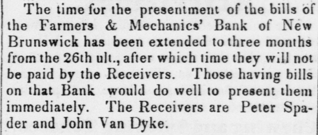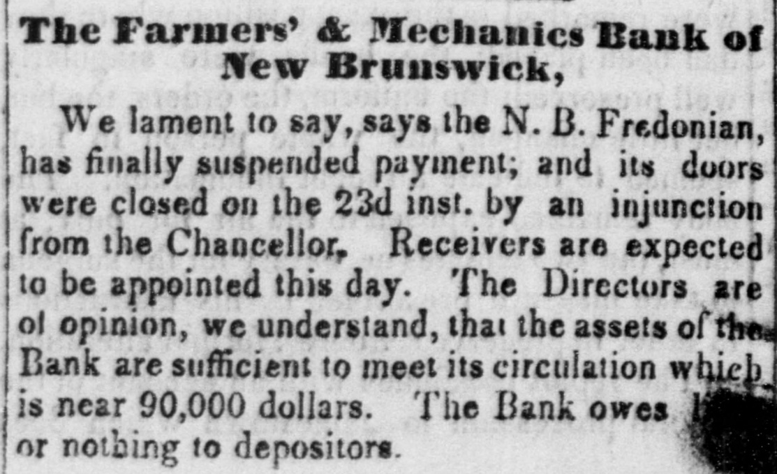 material variation. 89 10,000 State 51's 46. 6,000 Indiana Bonds 46 SIR do do 3,000 -60 46 do do 1,000 46 s. do do 1,000 46 de do 3 000 15 46: do do 3.00 85 2.000 Canal Fives, 1855 81 2 000 Kentucky Sixes 441 3.000 Illinois Sixes, 1870 snw 443 do do 2,000 1.60 44: do do 10.000 A sale of 2,000 overeigns was made at the boa d at $4 851 The sales of sterling bills -day have not been largeprincipally at 10 per cent. France 517 a 5.183-most y at the latter rate. The Liverpool packet takes out only about $35,000 in pecie. The Committee appointed to examine the affairs of the Harlem Railroad are to make a report to morrow night to an adjourned meeting of the stockholders Iti runo ed IN the street that it will be more favorable than was an ticipated. and that no easure will be cast upon the offi cers, excepting a luck of judgement in the conduction of the affairs of the Company. This, however, imay be one of the stock-jobbing rumors circulated by the bulls to of fact the stock, which is just now the principal speculative fancy at the Board. The reports that a greater number of shares has been issued than there was authorized will also, it is said, be disapproved. We give these items as the rumors of the day. A portion of the Teas imported in the Akbar was offered it auction to day by Hoffman & Co. The Company was large. and a better feeling was exhibited than at the previous sales. Some chops Young Hyson sold at an ad vance of 1 to 3d per lb., and the entire sale supported the market. The country Young Hyson was stopped at 61c and the Carton made at 42c, only one chop of the latter being sold. Nearly the whole parcel was sold. The bills of the Farmiers and Mechanics Bank o New Bruaswick N.J. must be handed to the receivers previous to the 21st inst., or they will not be entitled to a dividend, and will be after that valueless. B. the official statement of the situation of the Farmers and Mechanics Bask of Michigan, it appears that the cir$49,752 culation is 23,700 Deposites 3,472 Due Banks $76,9.4 Immediate Liabilities $10.76 Specie 7,43 Bauk Notes 4,927 Due from Bank $25,147 Immediate Assets