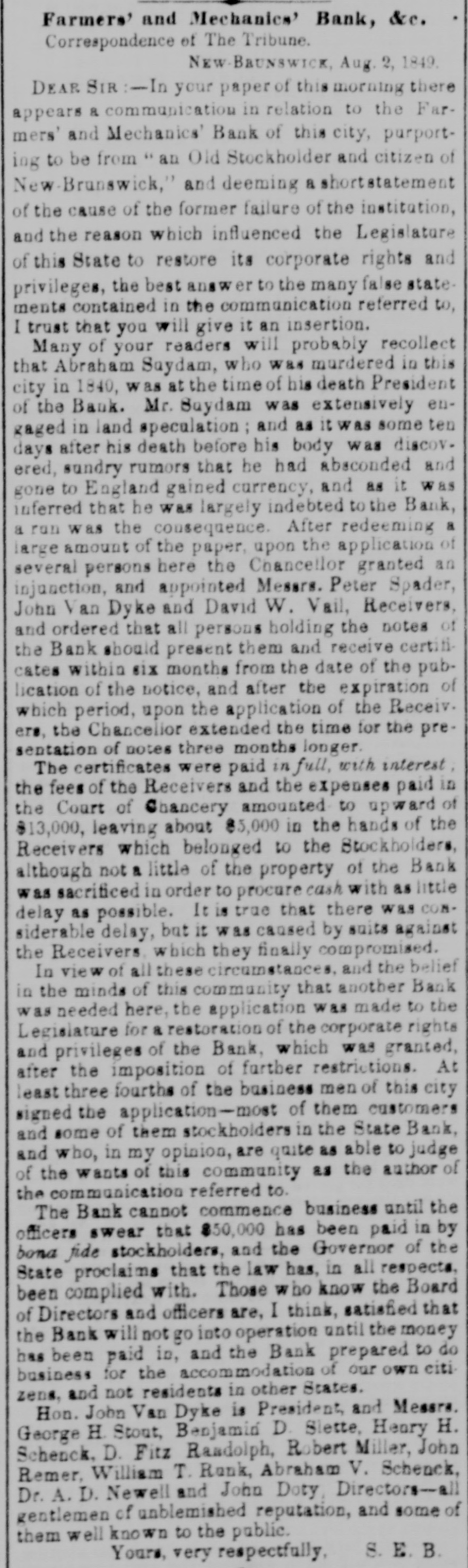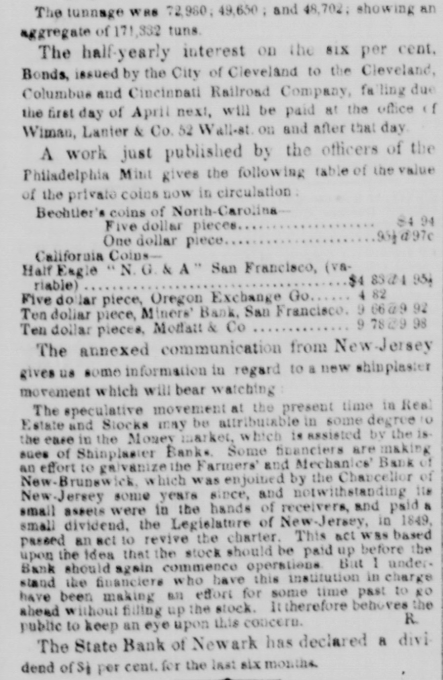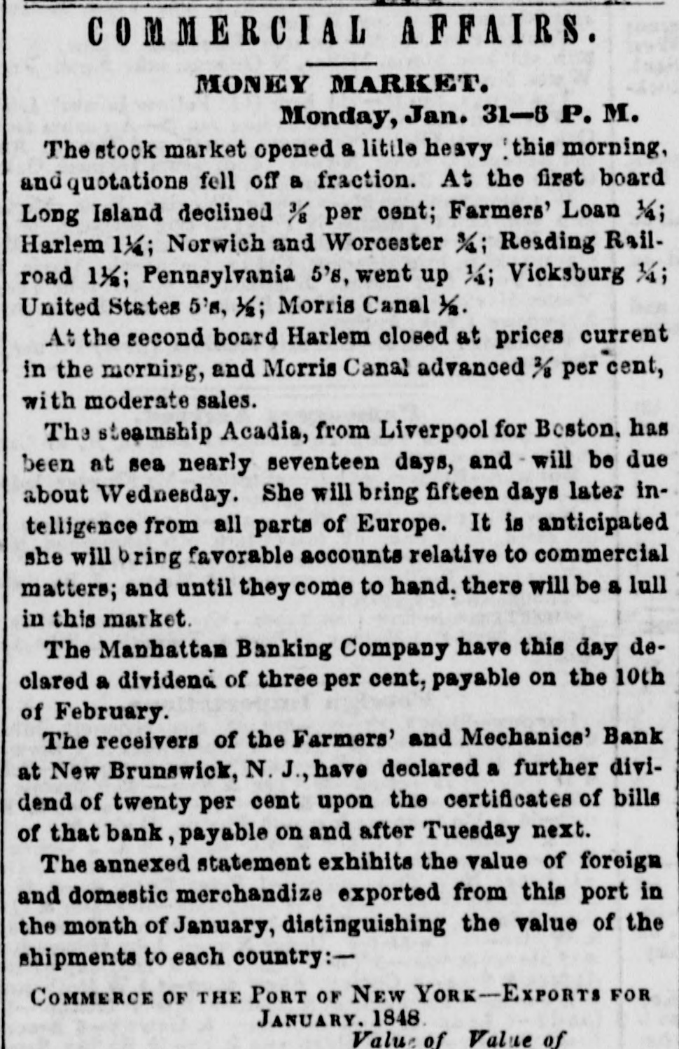 Bowery.--Three j24 3t* F RENCH lessons gratis. MADE No expense EASY for at books. 103 THEODOR GLAUBENSKLEE-Teacher to MR the German Language and Literature, removed j24 lw 162 Grand-st. IVES. JR. Professor of Music, teacher of Singing, PianoE. in private lessons and in classes, and of the 1m* j10 forte, 609 Broadway cor. of Houston-st. RENCH LANGUAGE.-Profemor F. RICHARD. inF graduate of the University of Paris, respectfully courses forms the public that he is about to open two new Wednesin the French Language, to meet on Mondays, another and Fridays. One from 6 to 7 o'clock and in days 8 to 9 o'clock Terms, 810 per quarter, payable 183 advance. from Subscriptions received at hts academy, j24 3t'g Broadway. HOW CASES: SHOW CASES!-A large as S sortment of newand second-hand Show Cases constant- Show ly on hand, and Show Cases made to order Also, Broome-st. Cases taken in exchange at M.J. EARL'S,346 j6 1m* near the Bowery. HARDWARE STORE FOR SALE. now doing For sale H the stock and fixtures of a Hardware Store, Sixtha good busines. Terms reasonable. Apply at 179 j21 lw* avenue. MACHINERY FOR SALE. seven Ose do. COFFEE 36-inck Picker and Lapper; 36-inch Cards; the whole in good working order, and now ten operation. The picker can be delivered in about bal. in three of the cards in about six weeks, and the days, by the first of April Apply to HENRY M. LOW, R. Paterson, ance N. where the articles may be seea, or to D. M. STEBBINS & CO. Namau-st N. jis 2wood OTICE. The Receivers of the Farmers' and Me and N chanica' Bank of New-Brunawick will pay on New the 1st day of February next. at their office in dolafter Brunswick a farther dividead of twenty cents on the the certificates issued by them, on presentation the of lar, said upon certificates by the holders thereof. By order of PETER SPADER, Chancellor JOHN VAN DYKE. j22tF1 New-Brunswick, Jan. 1, 1848. MACON, Geo. 6th Jan. 1848 IVIDEND. A dividend of two dollars per R. share R. Co. on capital stock of the Macon and Western has been declared, payable on the first day of February next the Bank of the State of New-York, for all shares standing on the books of the New. York Agency. By j13tF2 order, J. H. TAYLOR, Treas'r EW- YORK AND ERIE Railroad Company.- Railroad N The stockholders of the New-York and Eria of $10 are hereby notified that an instalment Company share on all shares on which the payments heretofore the of made per do not exceed $75, is required to be paid at of the Company 45 Wall-st. on or before the 17th day of tice February next. Byorder of the Directors New York, Jan. 17,1848. 017 1m] NATHANIEL MARSH, Sec'y SANDFORD B. KELLOGG, TTORNEY-AT-LAW, office 40 Pine-at St. all Louis, A The securing collection of debts, and professional business will be promptly and faithfully . attendad to. Refer to Messrs. L.A. Benoist & Co: Loker, Renick & bankers, and Collins & Kellogg, St. Louis. Mesars. Ran Co. Daryee & Co ; Lawrence, Trimble & Co; Hugh Auch inclose kin, & Sons, and W. W. Pignes & Co. New-York.80 2awfim Messra Collins & Brothers. Hartford TEADMAN'S PATENT Self-Suction Nursing Breast-Pipe-highly recommended by phy. and all who have seen them used. ad. inwill satisfy any person that sicians S spection Bottle and they have A single great havover those in common use. The subscriber vantages been appointed the sole agent for this market, is pre- of ing pared to furnish them in any quantity. The attention druggists is respectfully requested to the above, by G. DUMMER LYMAN, Manufacturer of Flint and Green Glass Ware, 109 John st. j8 Im* INREDEEMED PLEDGES. For sale cheap, a U large and varied assortment of unredeemed pledges, and consisting of new and second-band clothing watches musical and mathematical instruments, sextants, For jewelry, quadrants, double and single guns, pistols, &c. &c. information of those in want of such, I would name a Good pilot and beaver from $4 to 810; dress and frock coats, the few and cloaks. of my prices. A lot of cloth good overcosts from and 82 $8; pants and vests, $1 to su. new second-hand to flutes, from $2.50 10 each Also constantly hand, mechanical and other work and a great many other articies too numerous to u mention. ILSON g Chatham-st 430 Im* BRITANNIA WARE ANDMETALS-LuciusHart Bliate Boardman & Hart), manufacturer and importer of Britannia Ware and dealer in Block Tin Antimony, Lead, Metallic Bismuth, &c. at . Burling-slip, offers for sale at the lowest market prices Britannia arms, tea and coffee pots; Castors, with cut, mould and preased bottles Pewter plates, platters, dishes and basins; Flagons, tankards, zobiets, plates and baptismal bowls Metallic counting house inkstands, assorted sizes: Soup ladles, table and tea spoons a great variety Mantel candlesticks, chamber do. and Britannia lamps; Pitchers, mugs, tumbler and molasses cups; Planished tio coffee erus. filterers and egg-boilers; Patent table and tea spoons. with steel handles; A full assortment of Dixon's Sbeffield Britannia goods; Regulus of Antimony; Banca, Straits and bar Tio; Pare metallic Bismuth, pig and bar Lead. &c. Particular attention paid to supplying families at retail, j20 lw and every article warranted CHLOROFORM- subscribers are importing of Chloride of Lime, superior to any