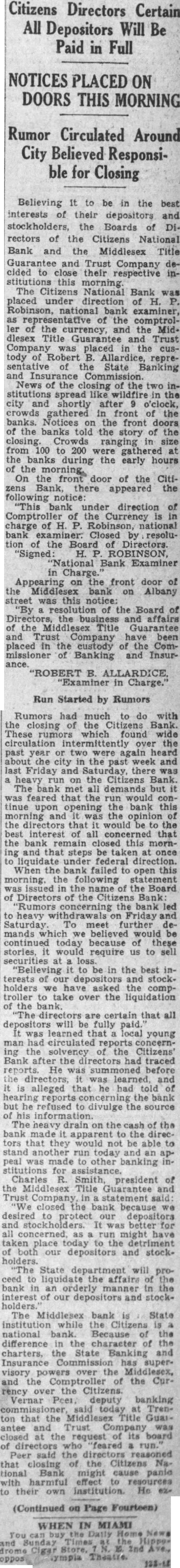 (Continued from page operate with the Guardian Bank had necessitated the Statewide financial paralysis. Later he retracted his statement, saying: "I have misunderstood the facts in the Union Guardian Trust Company situation." It was understood that Ford officials had objected strenuously to the Governor's first statement. The automobile industry promised its employes that they would either be paid in cash or else credit arrmaged for then in stores