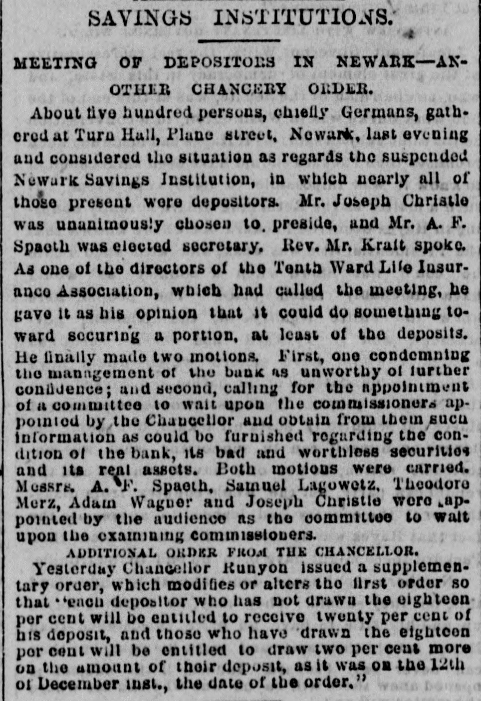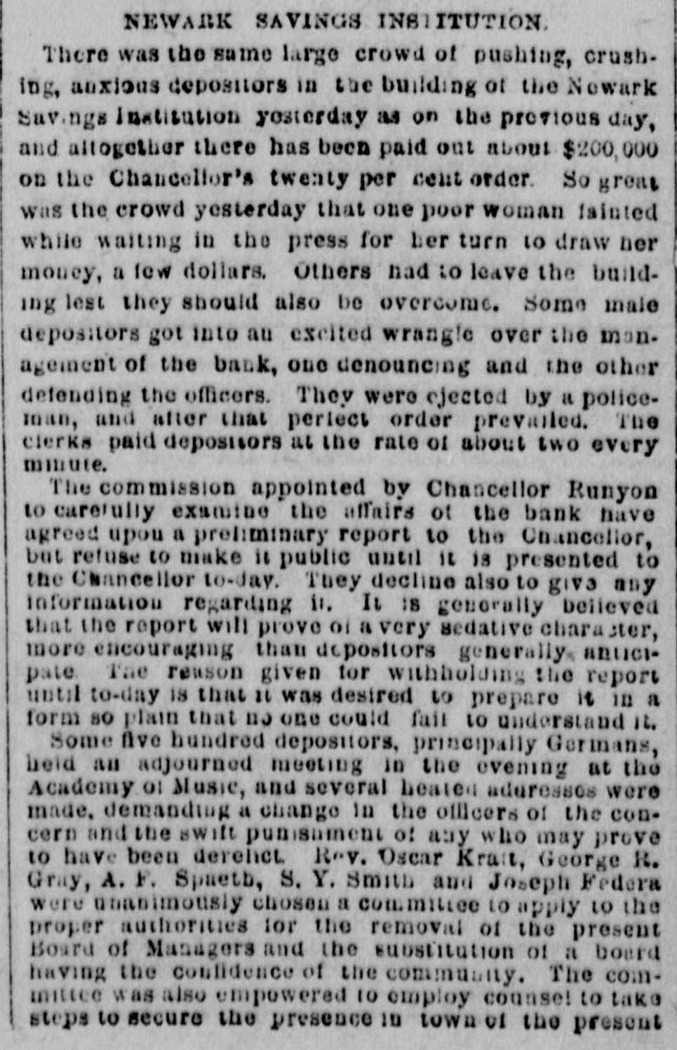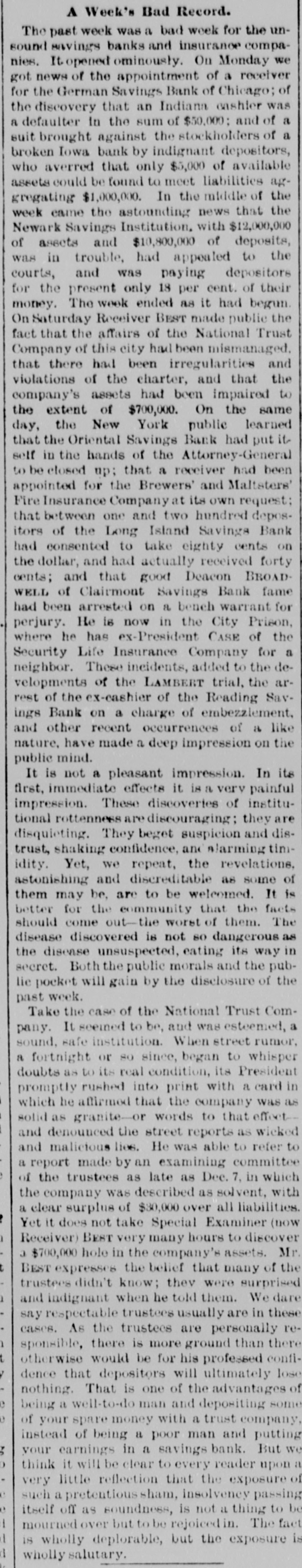 News and Other Items. Blondin has traveled nearly 2500 miles on the tight rope. Lydia Thompson's burlesque troupe has broken up and Lydia is going to Europe. The gas company of Richmond, Va., has cut off the gas from the custom house there on account of the non-payment of the gas bill. The Newark Savings Institution has been taken charge of by the Chancellor. Assets, $12,000,000; deposits $11,000,000. Geo. N. Jennott, aged 21, was killed Tuesday by an engine, while walking on the track at Nashua, N. H. A Catholic priest named Bloomer is in jail at Elmira, N. Y., for refasing to answer a query of the court. He stands OD professional privilege, and not on church discipline. Peter B. Sweeney sailed from New York for Europa yesterday, having settled with the city to the amount of $450,000 for his ring thieving. He expects to return soon on a lecturing tour. The canal system of the Khedive of Egypt has reclaimed 500,000 acres of desert land within 15 years and 300,000 acres more are being op' erated upon. A cancan troupe traveling,West has got into limbo at South Bend, Ind., the proprietors having been arrested under a law prohibiting immoral exhibitions. About two-thirds of the Southern cotton crop has been gathered, and the yield falls about 10 per cent. bebind that of last year. Nearly half of it has already been sold. Qneen Isabella of Spain is expected to visit Rome this winter with the intention and hope, it is thought, of effecting a reconciliation between the Pope and the King of Italy. Toronto Savings Bank has suspended payments. It is represented as solvent and has $125.000 of real estate. There is said to be no doubt but that the depositors will be paid in full. Among the delegates elected to the Republican general committee of New York, Tuesday night, are Naval Officer Cornell, U. S. Marshal Mike Cregan. U. S. Bankrupt Register Dayton and customs officer o' Brion. The City Hotel, two stores and four small buildings in Beringher City, Pa., have been burned. Loss about $10,000. A. B. McCartney of Mercer, Pa., was burned to death in the hotel. William and Mary College at Williamsburg, Va., wants Congress to pay her for the destruction of some of the college buildings by federal soldiers in 1862. This claim has been presented before and the House voted to pay it, but the Senate failed to concur. By recent decisions of the New York courts, a man is held responsible for his wife's funeral expenses, the same as for her living, no matter how much she may leave. But he may charge her estate with extra expenses on account of religious forms, it she was not of his denomination. Mr. Eliha Barritt of New Britain, Conn., "the learned blacksmith," had a severe hemorrhage of the lungs last Friday, and is considered by his physicians to be in a very critical condition. He has been in feeble health for some months, and as he is sixty-seven years old, it is not probable that he will again be restored to health. There lives in Tolland county, Conn., an old man named Bernard Covert, whom some of the elderly men of our day will recollect as a famous singer at political meetings in aid of the Whig and Republican cause. He took part in successive Presidential canvasses from the famous "log cabin and hard cider" canvass of 1840 up to that of 1868. Horace Greeley used often to agree to take the stump only on condition that Mr. Covert accompanied him. The death of Bishop Marvin of the Methodist Episcopal church South, will require the election of three bishops by the General Conference which meets at Atlanta, Ga., next May. It is probable that the Rev. Dr. Lynus Parker, editor of the New Orleans Christian Advocate, will be urged for one of the places. Had the Rev. Dr. Dancan, who died a few months ago lived, he would undoubtedly been elected to a bishopric. Mrs. Chisholm, whose husband was murderf ed in Kemper county, Miss., says that the persons who attacked him in jail were all old resi1 dents, and, what seemed most strange, all religions were represented. "There were," she says, "Catholics, Presbyterian elders, and, most of all, I noticed two Methodist class-leaders that were very active all through the matter. One of these men was a great exhorter, and had often labored with us for the good of our souls. At the last camp-meeting I attended this man got so "happy" he shouted at a great rateand ca ne up to Mr. Chisholm and took him around the neck and begged him to go forward, and said, It is all you lack, Judge, to be a first rate man-all you lack is religion.' And that man helped kill my husband."