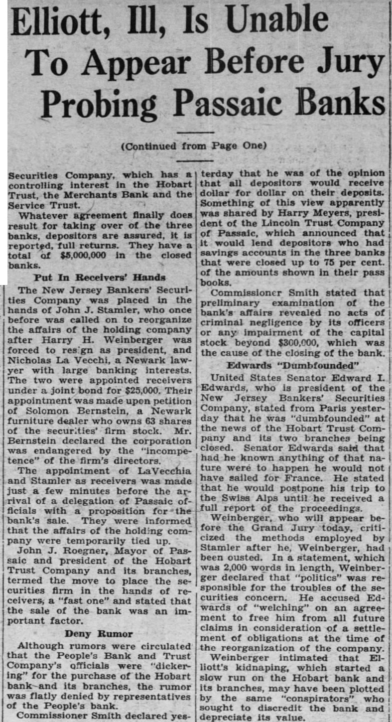 (Continued from Page One) Securities Company. which was organized by Harry H. Weinberger, its deposed president, would be closed today. The banks were closed before the opening hour. and two police officers were stationed at every door. Word spread quickly, and crowds gathered, but the news was taken quietly, everyone seeming to realize that the action probably was for the best.