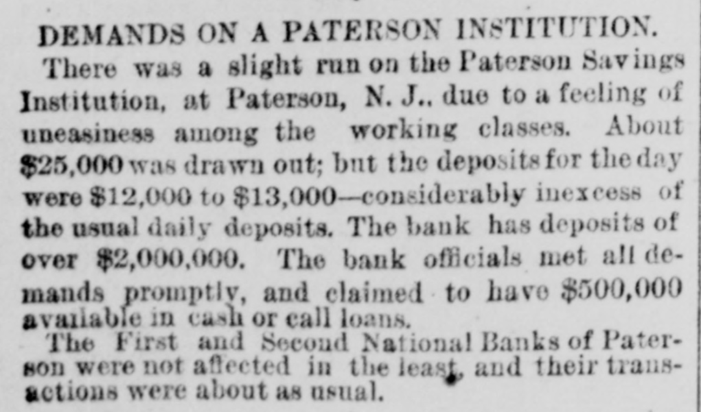 very by the temporary trouble in Kansas City, still the general opinion is nothing serious will result outside of New York. Considerable attention is attracted to Donnell, Lawson & Simpson, and there is considerable desire to know the condition of that firm, and what its future action will be, It has intimate relations with, and is a correspondent of nearly one hundred banks in Missouri, some sixty in Kansas, thirty or forty in Texas, and has numerous connections in all extreme western states and territories. L. V. Stephens, of Booneville, one of the most prominent bankers in this state, estimates, in case of o the complete failure of the firm, the loss to Missouri will be half a million. It is feared also the loss to the Texas bankers will be heavy. A dispatch from St. Joseph says: Attachments have been laid on Daniels' property in that city to the Tamount of $60,000. James L. Wilson, assignee of the St. Joseph Savings bank, which closed yesterday, has taken charge .and will investigate the condition of affairs at once. DALLAS, TEXAS. DALLAS, Texas, May 15.-The Fort Worth Water Works company to-day began suit in the United States court against the suspended firm of Donnell, Lawson & Simpson, of New York, for $13,000, alleged to be due on the sale of bonds, the proceeds being on deposit with the firm at New York at the time of its suspension. The marshal levied on a two story brick business house and lot on Main street to satisfy the claim. ST. JOSEPH, MO. ST. JOSEPH, Mo., May 15.-A better feeling has prevailed here to-day, and it is generally believed that the worst of the panic is over. The banks opened their doors a little earlier than usual this morning, and have met the demands of depositois, besides doing the usual discount business. There was no perceptible run on any bank. The bankers and business men are unanimous in the opinion that the State Savings bank was in good condition and would not have failed, had it not been dragged down by its intimate New York connections. It is confidently believed it will pay dollar for dollar. . PATERTON, N. J. PATERSON, N. J., May 15.-A slight run on the Paterson savings institution to-day, was promptly met. MISSOURI STATE BANK. JEFFERSON CITY, Mo., May 15.-Secretary of State McGrath, is in receipt of reports from the banks of the state, up to the first of the month, and says: The statement shows the banks to be in a flourishing condition, and show a better financial standing than at any previous time. THE OIL EXCHANGE. PITTSBURG, May 15.-A feverish feeling prevailed in the petroleum exchange during the early hours of this morning, owing to the fear that the broker's sheets would not pass the clearing house dealers refused to buy or sell, and the market was almost at a stand still. Exaggerated reports of failures were circulated, and the general trade is awaiting with anxiety the clearing house report, fortunately the fears proved almost groundless. One dealer, Geo. Bingham, was nnable to fulfill his contracts. He bought 25,000 yesterday at 92c which he was unable to take take to-day, and Vice President Fisher sold that amount under the rule to his account at 85% The loss will not exceed $2,000, and will be arranged it is thought to-morrow. The market which opened at 82c, declined to 80c recovered to 83% settled down, and closed steady at 831/4C with a better feeling. Bradford dispatches report the closing of the doors of the Tuna Valley bank to prevent a run. The affairs are reported in excellent shape CINCINNATI, CINCINNATI, o, May 15.-Aside from a little more caution on the part of bankers, there has been no effect here from the disturbances in New York. The business shows no less volume. The news of the failure of Fish & Hatch was received too late to affect the day's business, but is regarded as a proof that the causes of this trouble are to be found outside legitimate and actual business. BRIDGEPORT. CONN. BRIDGEPORT, May 15. The raid on the banking house of Watson & Co., resumed business this afternoon, but excitement subsided by 10 o'clock.