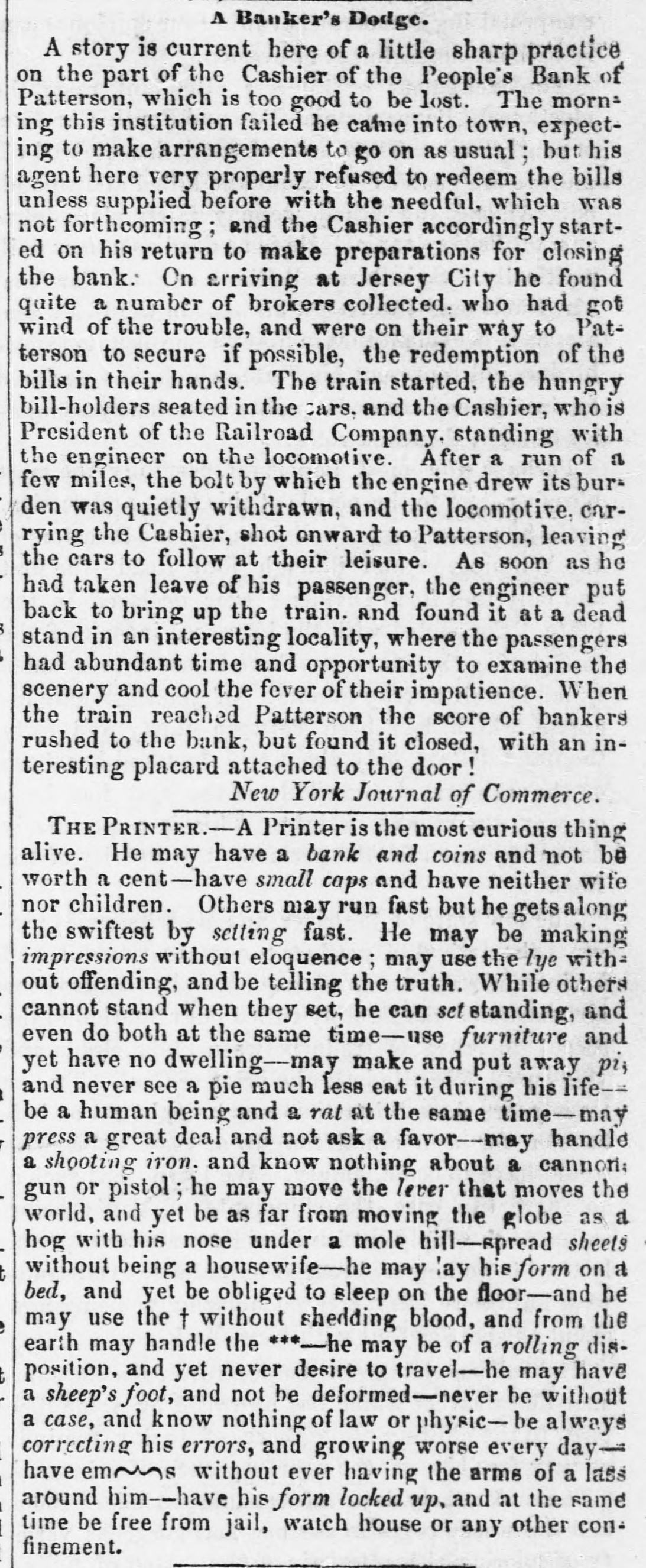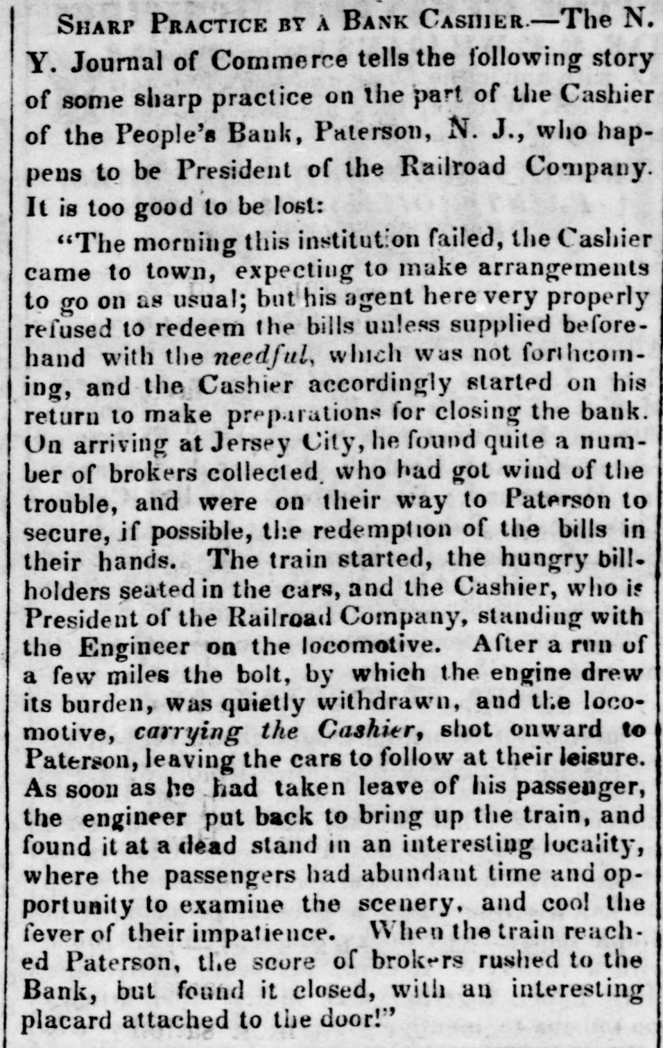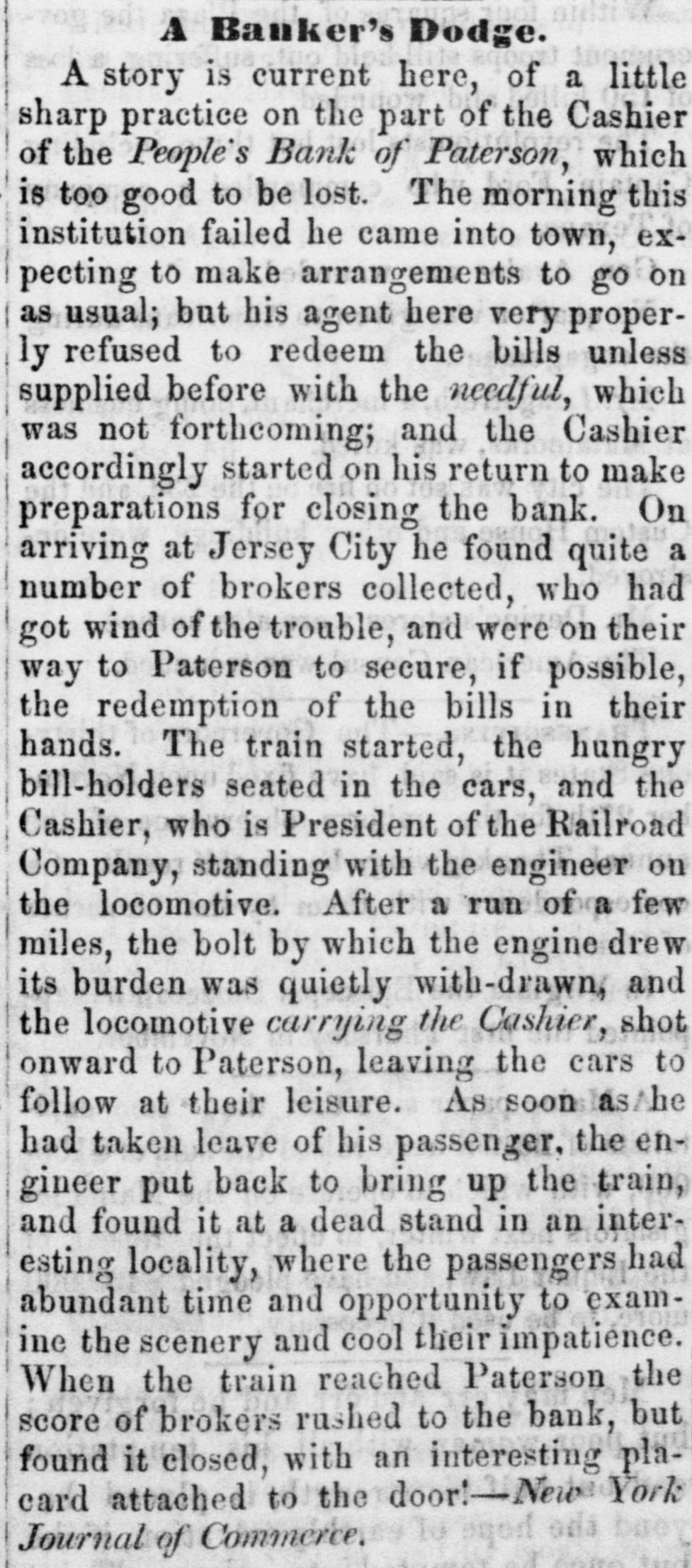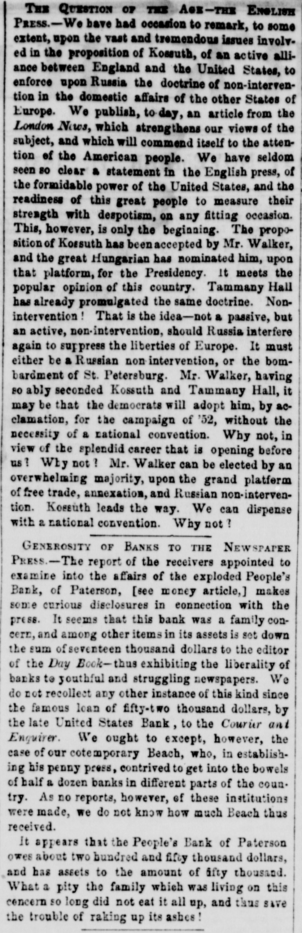 POSTSCRIPT! [Despatched to the American Telegraph.] BALTIMORE, September 25-2 p. m. Sales of 500 bbls. Howard street flour have been made to-day at $8 87 to 94. Grain is scarce and prices unchanged. There is no alteration in the Northern markets. The Examination at Lancaster of the Christiana Rioters. LANCASTER, September 23, p. n.-The magistrates met in the Court-house at 11 o'clock, this morning, for the purpose of hearing Castner, Hanaway, Elijah Lewis, and others, charged with aiding and abetting in the Sadsbury township murder, and also with treason in resisting the execution of the laws of the United States. The following counsel appeared on the part of the Commonwealth-Hon. John L. Thompson, District Attorney; William B. Fordney, esq.; Thomas E. Franklin, Attorney General of Lancaster county; George L. Ashmead, esq., of Philadelphia, a representative of the United States authorities in place of John W. Ashmead, United States District Attorney, absent on official business; and Robert J. Brent, Attorney General of Maryland. For the defence-Thaddeus Stephens, Reah Frazer, Ford, Kline, and Dickey, esq'rs. Long before the hour for the examination. to commence, the court-room was crowded to excess, and the most intense interest was manifested in the proceedings. Five witnesses were examined, among whom were United States Marshal Kline, Dr. Pierce, and Mr. Hutchins. Nothing important, further than what has heretofore been published, has as yet been elicited. However, it is apparent that a strong case of treason has been made out. The defence intimated that they had some thirty witnesses to be examined. The case will probably not be got through before Thursday morning. It seems to be the general impression among the members of the bar that the prisoners will be committed to answer the charge of treason against the United States. The crowd in attendance continued very large up to the hour of adjournment. PHILADELPHIA, September 24, p. m.-Bank Failure. - The People's Bank, at Paterson, New Jersey, failed to-day. Its circulation we understand is very small. TRENTON, (N. J.,) September 24th.-The September term of the United States circuit court opened here yesterday. The grand jury found two indictments. The civil docket was then called, and the principal case was Goodyear vs. Day, involving the validity of the Goodyear India Rubber Patents. The action in law being first in order, the defendants expressed themselves desirous of trial. The plaintiffs making no motion, the defendants' counsel moved a nonsuit. The court declined to consider the motion at this time, and refused to try the case in the absence of Judge Grier. It was accordingly postponed till his arrival on Tuesday next. BOSTON, Sept. 24.-The steamship Niagara sailed to-day, with fifty-five passengers, and $335,000, on freight. Accounts from Cherryfield, Maine, state that the whole country was being burnt up, and scarcely an acre of green land was left along the seaboard. The flames had swept over Mt. Drescot, destroying several houses. In Hancock county they were suffering severely, the roads being almost impassable from the smoke and flames. The timber of the Cutler company was damaged to the amount of $150,000. An accident happened on the Central railroad, near West Hartford, this afternoon, caused by the passenger train while descending a grade, running at the rate of fifty miles an hour, coming in collision with the ascending freight train. The cars and passenger train were completely demolished. Seventeen persons were badly injured, and four killed. Nine had their limbs broken. Mr. C. Kimbal, conductor, and Mr. Frederick Palmer, brakesman, were fatally injured. The engineer and fireman was escaped by jumping off. The freight train running out at the time. John Smith, conductor on the Stonington railroad, was knocked off the train to-day, and his head cut off by the wheels. NORWAY, Me., Sept. 24th.-Bernett's Hotel and five other buildings have been destroyed by fire. Loss $20,000.