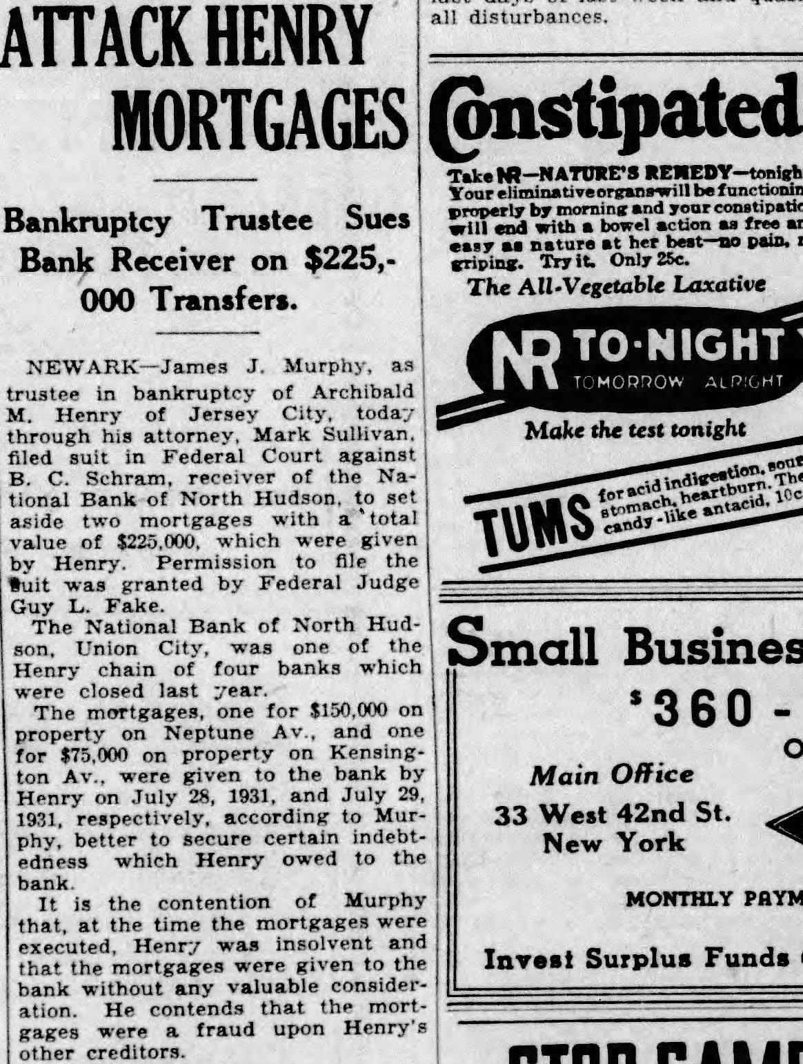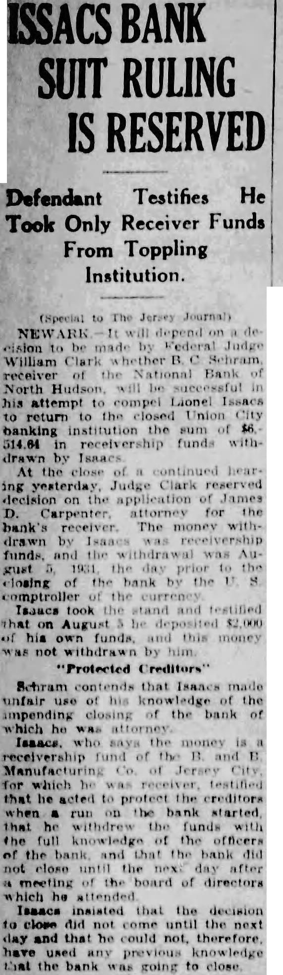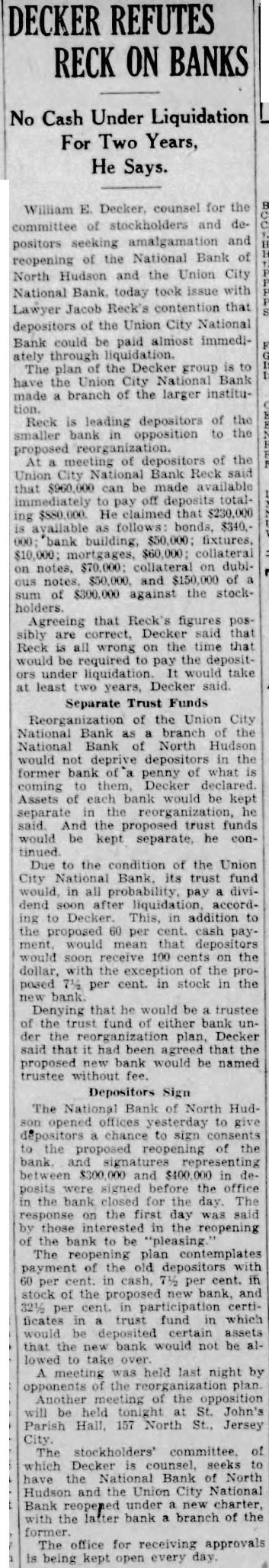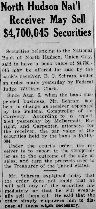 Bank Receiver Sells Debtors' Property Judge WilClark today Samuel Stock, Receiver National Bank North Hudson, Union City, for $7300 property owned William and Margaret Thorborg, Union City. The proceeds the applied obligations the Thorborgs the bank.