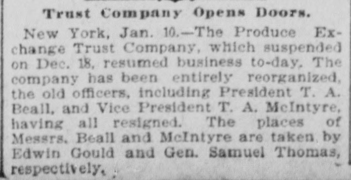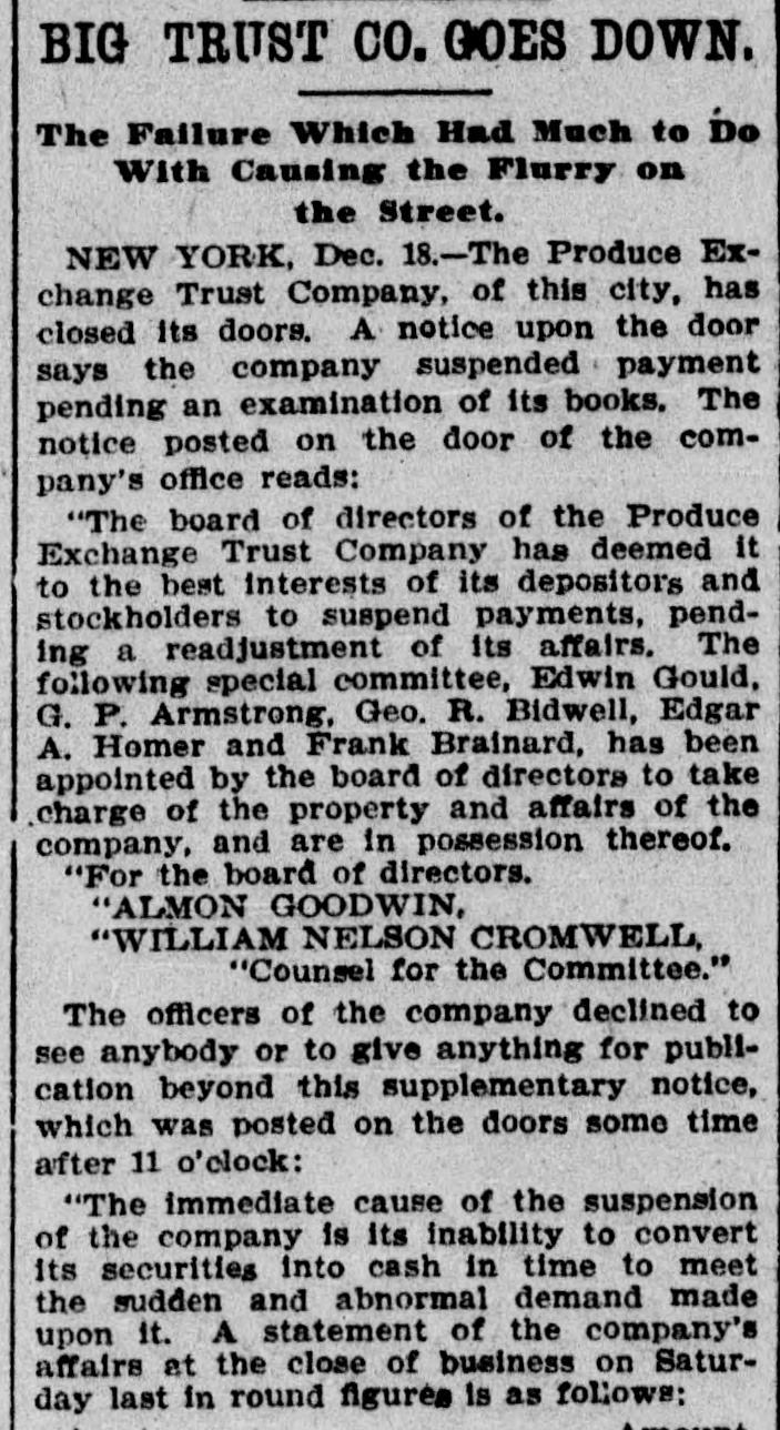 # ON THE BRINK. The government already has over $80,000,000 deposited in national banks, the largest sum for many months, and has left little undone to ease financial conditions in Wall street. The great expansion in bank loans, the heavy decrease in reserves, the high prices at which securities are quoted and the overextended condition of many specu-lators and cliques are responsible for the belief entertained by some of the most ex-perienced observers that the market is in a dangerous position.-Financial News Item. Have any of the Populist papers reported financial conditions any worse than this? Eighty millions borrowed from the govern-ment without interest and still the banks are on the ragged edge of despair, with less than $2,500,000 of surplus funds on hand-reserve constantly decreasing, although loans are being called in wherever possible. Suppose the government should call for that $80,000,000. What then will become of our boasted financial prosperity? The above clipping is proof positive that we have not money enough to expand our business any further, we cannot even keep it where it is without serious danger of universal collapse. Speculation has been compelled to call a halt on acount of the growing scarcity of money in New York. Stocks and securities of all kinds are declining. Grain also is going down, wheat is only worth 50 cents in Nebraska, although the world's crop of wheat is 200,000,000 bushels short. A few years ago present conditions would have made every bushel of good wheat in the West worth a dollar. Republican farmers that support the gold standard are paying dear for their patriotism when they sell their products at half price on account of present financial conditions and pay double for those necessaries that are controlled by the trusts fostered by their party. The Non-Conformist. The New York bankers are now im-porting gold at a loss, -one firm brought $5,000,000 in one shipment the other day, and the printing presses of the treasury department in Washington are pouring out paper money by the mil-lions. A desperate struggle is going on to make the gold blanket stretch long enough to cover the cold toes of the world. We are on the brink. The collapse may come at any time. Special to the St. Paul Dispatch. WASHINGTON. Sept. 18.-New York bankers are in financial straits and it is another case of chickens coming home to rost. For a long time the asacciated clearing house of New York has been charging Western bankers for collecting checks. The Western bankers some few weeks ago made a protest and requested that the vast amount of exchange in the form of com-mercial checks be credited up at face value, without deducting collection charges. The New York banks would not consent to this. As a result millions of money deposited to the credit of Western people has been with-drawn. In fact, the surplus reserve is about exhausted, for in addition to large withdrawals of account, vast sums are being sent West to move crops. Another reason for the New York money famine is that millions have been absorbed in floating so many new trusts. Conservative financiers here who have been watching business conditions say that in due course of time the money market and the compet-itive rush for business will settle the trus question more effectively than gatherings like the one recently held in Chicago. The Produce Exchange Trust Co., of New York, has already broken the cast iron rules of the consolidated banks, and gave notice today that it would withdraw from the Clearing House association.