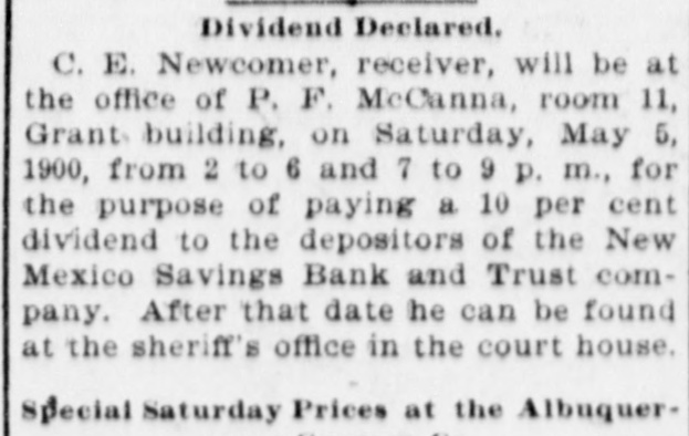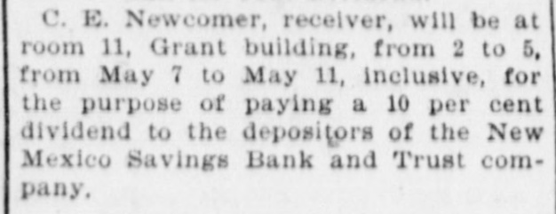 Whereas, Said James Sanches has failed to pay any part of said sum adjudged to be paid by him to said Charles E. Newcomer, receiver of said New Mexico Savings Bank and Trust company of Albuquerque.