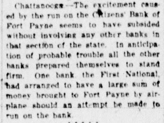 -The First National Bank of Fort Payne, Ala., has suspended.