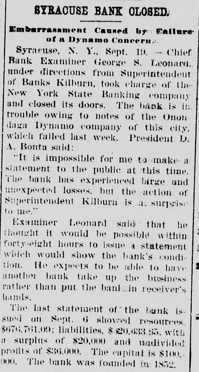 Late Items. Sunday was a day of funerals in Birmingham, the remains of 78 victims of in Shiloh the various for terred the panic in church cemeteries being inaround are leaving negroes Many people the city. Colon and Panama for fear of rebel attacks. The revolutionists are massing on the railroad of the Isthmus. Many liberal sympatizers are imprisoned for appearing on the streets. Peter Olson, who shot and killed his sweetheart, Mary Peterson, in Omaha September 8, was killed recnetly in a fight with posse three miles north o Bancroft, Neb. President Mitchell can call upon the actors' union anywhere for a benefit performance. The new South African colonies are to be assessed a half a billion dollars for war expenses. Shaw has announced that the week he has the on round during distirbution Secretary numbers Autorized of ten dollars in public among the the country million banks throughout fds which have bonds available for security. Two presons were killed and 44 injured in a recent wreck on the Baltimore & Ohio Southwestern road at Leesburg, Ohio. Baltimore secured the next sovereign grand lodge of Odd Fellows. Marie Henriette, queen of the Belgians is dead Neither her husband, members of her family nor majesty's doctor were present at the time of her death. Two members of her suit were with the queen during her last moments. There is a movement in the intiment circle of Kruger's friends to send him to South Africa. The postoffice building at Minot, N. D. collapsed recently and is a total wreck. With the single exception of flax seed for the season are that country proRussia's the largest crops present ten. has duced in any year in the last Chief Bank Examiner Geo. S. Leonard has taken charge of the New York Banking company in Syracuse, and closed its doors. Prompted by jealously, A. E. Whitshot W. comb of Chicago and H. Mrs. Sampson Elizaof Battle Creek, Mich., beth Nettler of Chicago at Sampson's home and shot himself through the head. Both men are dead and the woman will live. The immigration fever of the Jews of Roumania still continues, and that within the last three months 4000 Jews have left the country for the United States and Canada. One of the most sensational and dramatic incidents that ever took place in bull ring in Mexico occurred reat Chihuahua, a cently a when tremenbull that had been goaded into an eight landed the spectators madness dous among leaped foot occupying fence and the seats. was a mad of the populace to escape stampede reserved There The bull fin- the maiming or death. was ally shot by young ranchero. General Knox has returned to after his conferred rewhere Atttorney Washinggton he with trip officials to Paris, garding the sale of the Panama canal property to the United States. A onew world's record at wing shoot ing with rifles has been established by Adolph Toepperwein, of San Antonio Texas. He broke 986 out of 1000 clay targets thrown from traps. Unless an eight hour working day is granted in the flour mills of Minneaa strike will go into effect SepThe mills polis tember 29. barrels of Minneapolis of flour produce 16,000,000 or nearly two fifths of the total output of the country, yearly. William S. Stratton, the multimillionaire of Colorado Sprins, Col. owner of the famous Independencies mine in the Cripple Creek distriact, is dead after an illness of several months. Monday started the nineteenth week of the coal strike. Ontario, Tommy Ryan Carter knocked At Fort out Erie, "Kid" of Brooklyn in the last minute of the sixth round. A gas and powder explosion occurred in Norfolk, .Va., recently in the Big Four as the result James an engineer; mine, Leiter, John of which Reickie, a miner, and a number of colored miners are known to be imprisoned. John Larson, a carman at the Butte Boston smelter at Butte, was smoth-