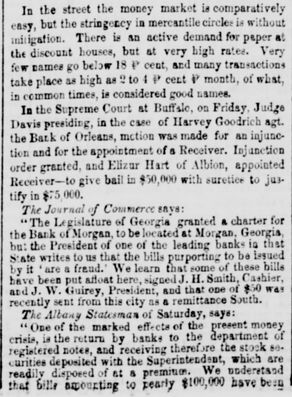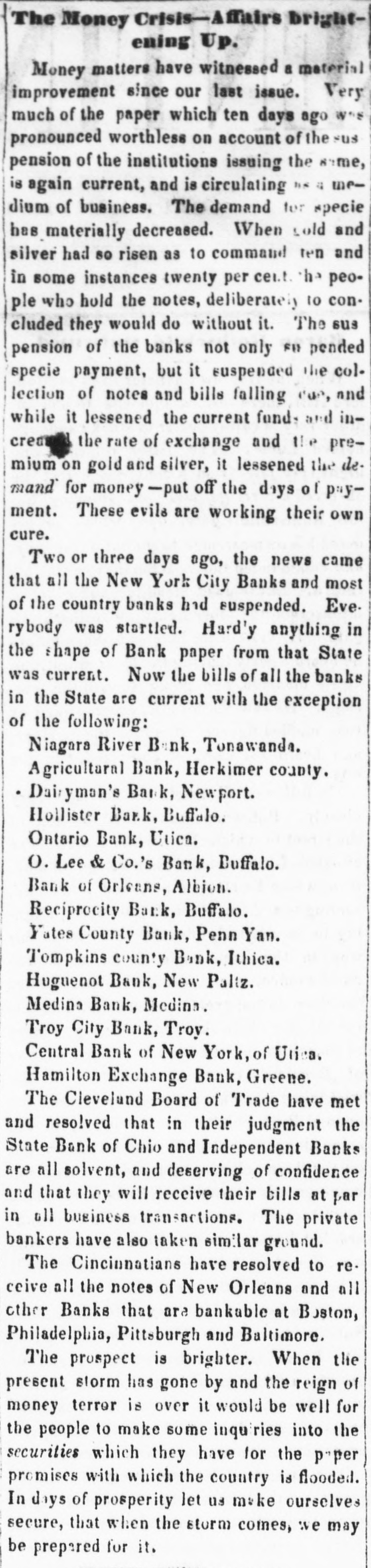 Stated-that the Erie City Bank will resume specie payments in a few weeks. It has been discredited by the New York brokers.