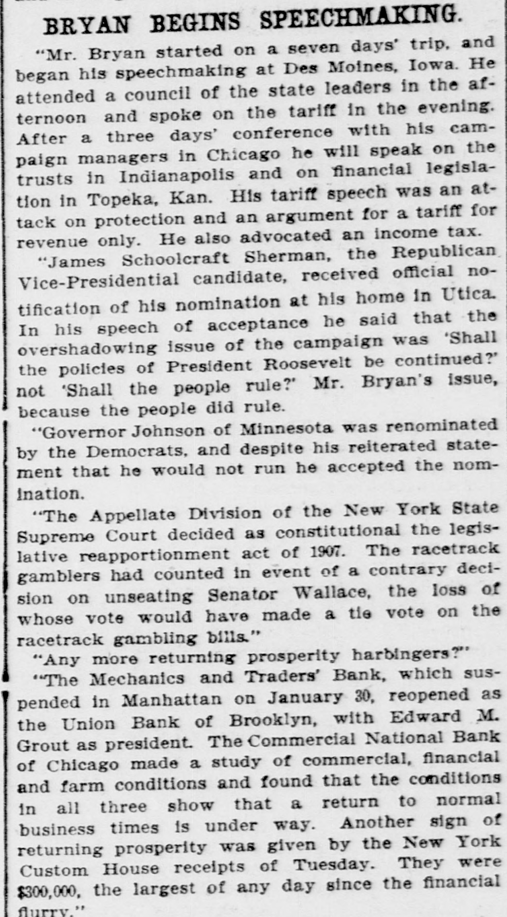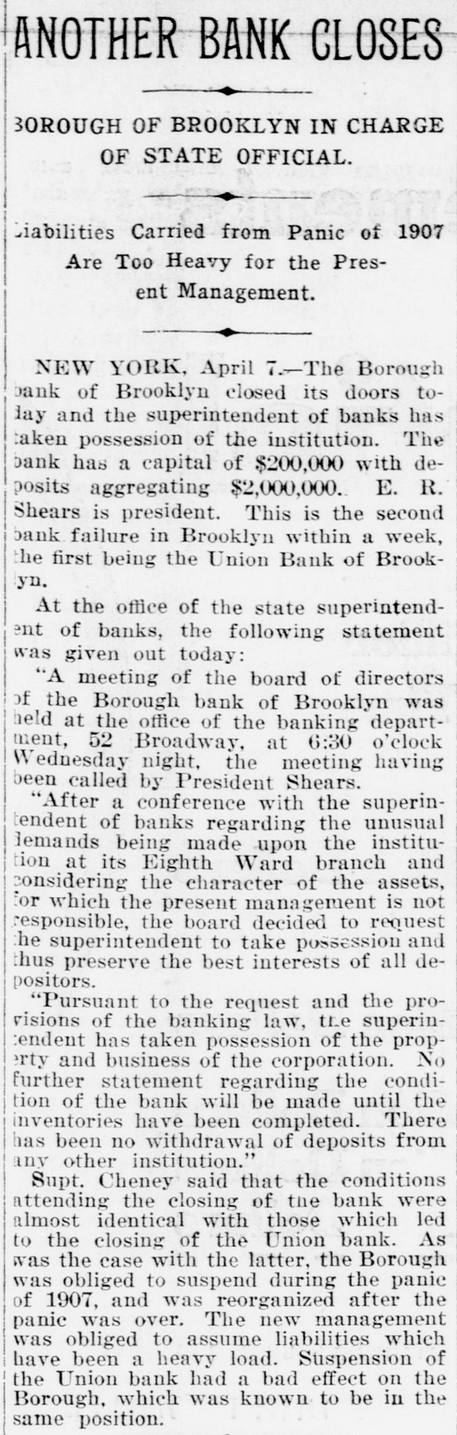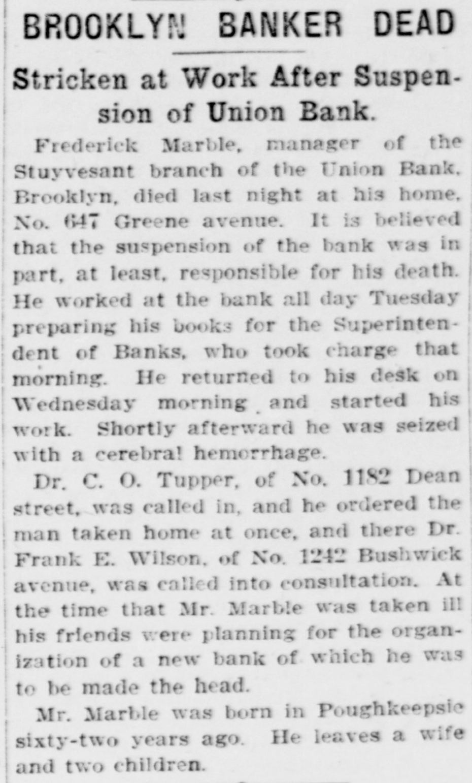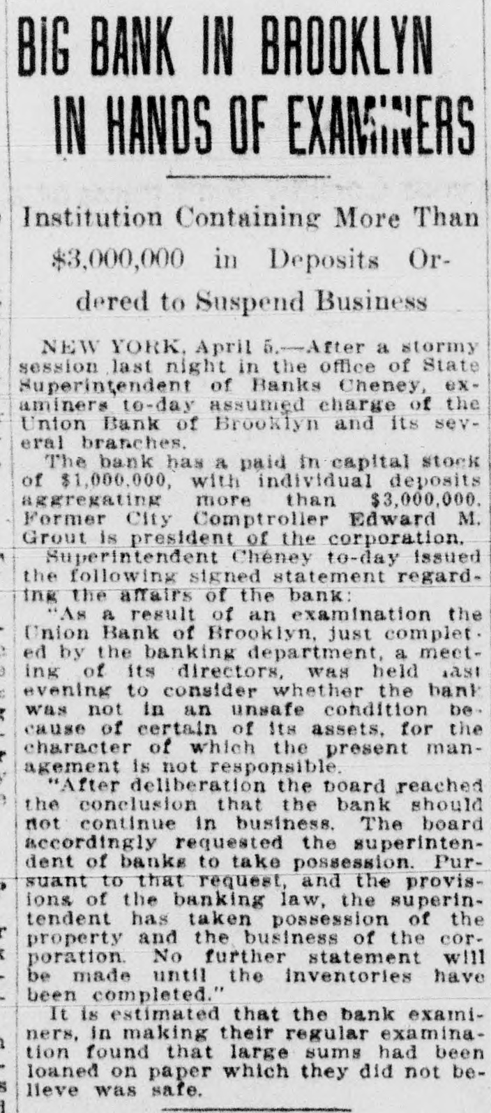 UNION BANK DIRECTORS. New Members of Board Announced -To Open Next Week. The names of the new directors of the Union Bank, formerly the Mechanics and Traders', were announced yesterday. Announcement also was made that the rehabilitated institution, which has been in suspension since last January, positively would be reopened next week, although the day has not been definitely set. The new directors are Bridge Commissioner Stevenson, Nathaniel H. Levi, president of the Broadway (Brooklyn) Board of Trade: ex-Representative Frank L. Wilson; Jacob L. Greatsinger, former president of the Brooklyn Rapid Transit Company; John R. Stine, president of the New York Leather Belting Company: Thomas J. O'Donohue, William H. Lynn, E. J. Stalker, formerly cashier of the Chase National Bank, and William H. English, vice-president of the Empire Trust Company. The five directors elected in January, who took office a few days before the bank closed, will continue as members of the directorate. They are C. E. Donnellon, of the Chauncey Real Estate Company; S. J. Harding, E. A. Fitter, Paul Grout and Edward M. Grout. Of the old board the following, who represent various branches of the bank, are to remain: Henry Albers, Barth S. Gronin, W. F. Corwith, William Strasser and Charles Straus. The directorate is thus cut down from twenty-four members to twenty. Edward M. Grout, president of the reorganized bank, said that the banking interests from whom the credit of $1,000,000 was obtained without commission or bonus are the Metropolitan Bank and the Empire Trust Company. At the meeting yesterday steps were taken in compliance with the report of Clark Williams, Superintendent of State Banks, to change the name of the institution to the "Union Bank of Brooklyn" and to change its place of business to the present Union branch, at No. 44 Court street.