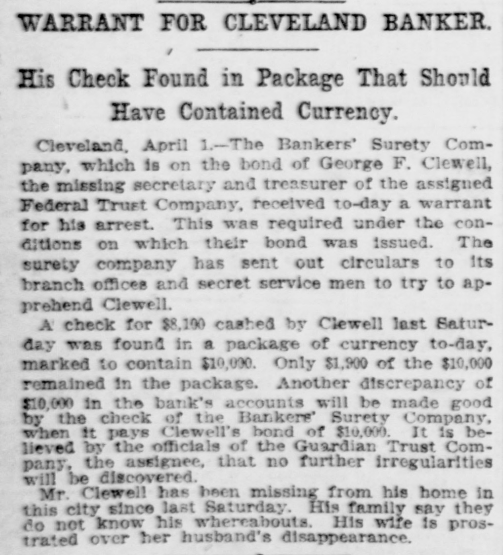 EVENTS OF EVERYWHERE. Sour Lake has formed itself into a city and a full set of city officials are now in charge of affairs. Mrs. Lauro Casey, of Laredo, accidentally drank a cup of water that had been poisoned to kill rats, and died from the poison. The National Civil Liberty party, a negro organization, has called a meetto take at St. the of a ing 6, for purpose place nominating Louis July candidate for president. The Morris County National Bank of has been authorized to business with $35,000 J. Naples, begin Tex., capital. H. Matthews is president, D. A. Cook, cashier. Ground will be broken in May for a theatre on the site of the Ferris Wheel Park, Chicago, to cost $150,000. It will be known as LaVeview Theatre and will seat 1495 people. James Colgate, a member of the New York Stock Exchange, has taken out insurance policy for $1,500,000. This said to be the an is largest human single life. risk ever accepted on a The Sully collapse is still engaging attention in the speculative circles. No settlement has been made, but matters are drawing down to a focus that will bring about an adjustment soon. The Seattle Trade Register says that orders have been placed with local dealers in the last few days for cases of Alaska 225,000 salmon the for shipment to Japan for us by army. apThe Railroad Commission plant has at Caproved the interlocking north of Dalias, the of the Houston crossing ruth, protecting and Texas TexCentral and Missouri, Kansas and as Railroads. Viceroy Alexieff arrived at Port Arthur Thursday and was received by Vice Admiral Makaroff and other officials. He inspected the ships and went on board the torpedo boat destroyer Silni, which distinguished herself in the latest attack by the Jap anese. Private advices received from Washthat the President has deto establish a termined ington state protectorate which over the island of San Domingo, will be such in effect, if not in name. The Union Trust Company of Boston has closed doors. The nominal assets are about $1,000,000, with liabilities of an equal sum. The Federal Trust Company of Cleunderstood has assigned. It is will turn over about that veland, it Its $1,000,000 total deposits to the assignce. as;sets will be about $3,000,000. The Federal Trust Company has a capital :stock of $1,500,000. Its surplus fund is $50,000 and it has about $140,000 undivided profits. According to the last and report had $2,288,362 in loans discounts, $45,300 in real estate loans and owned $729,000 bonds and mortgages. Its last statement showed inof of dividual deposits $1,593,328. said to One have its prominent officials is :suddenly disappeared. The world's automobile records have at Nice. M. ing car, been a broken 100-horse power Rigolly, for the driv- inrace a mile, in 53 In :standing ternational start, cup covered 3-5 seconds. for the kilometre (3280 feet) race the Rothschild cup, with a flying start, Eigolly covered the distance in 25 3-4 seconds. Boll weevil was discvoered at MontLa., near gomery, Alexandria. Orleans The by pest was brought to New a country editcr. A native of Texas examined it and pronounced it the genuine weevil. Dispatches say thta Russia has bought the Fuerst Bismarck, and that the price paid was $800,000. The Krune Mill and Elevator Comof Denton has pany amended stock its char- from ter by increasing its capital $20,000 to $40,000. The Frisco mint has undoubtedly all records for broken gold coinage in civisince the use of money Jegan Nization, the amount coined March reaching $33,113,500, an average of more than $1,000,000 a aay. The New York Automobile Club has arranged to make many tours from